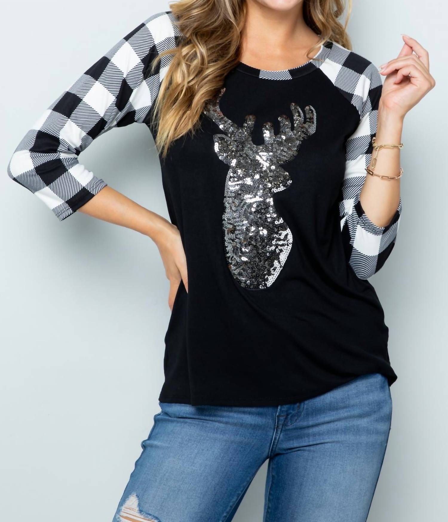 Uma blusa de manga comprida que você pode usar com jeans, saias, bem... quase tudo! Descubra a blusa de manga comprida com estampa de veado contrastante da Acting Pro, feita sob medida para o viajante estiloso. Esta camiseta preta chique apresenta mangas três quartos e um divertido patch de veado no peito, confeccionada em uma mistura confortável de 95% poliéster e 5% elastano. Com seu fecho pull-on e gola redonda atemporal, esta blusa é perfeita para as aventuras da primavera. Desfrute de um estilo descontraído e sem complicações, elevando seu look casual com sua estampa xadrez e xadrez.