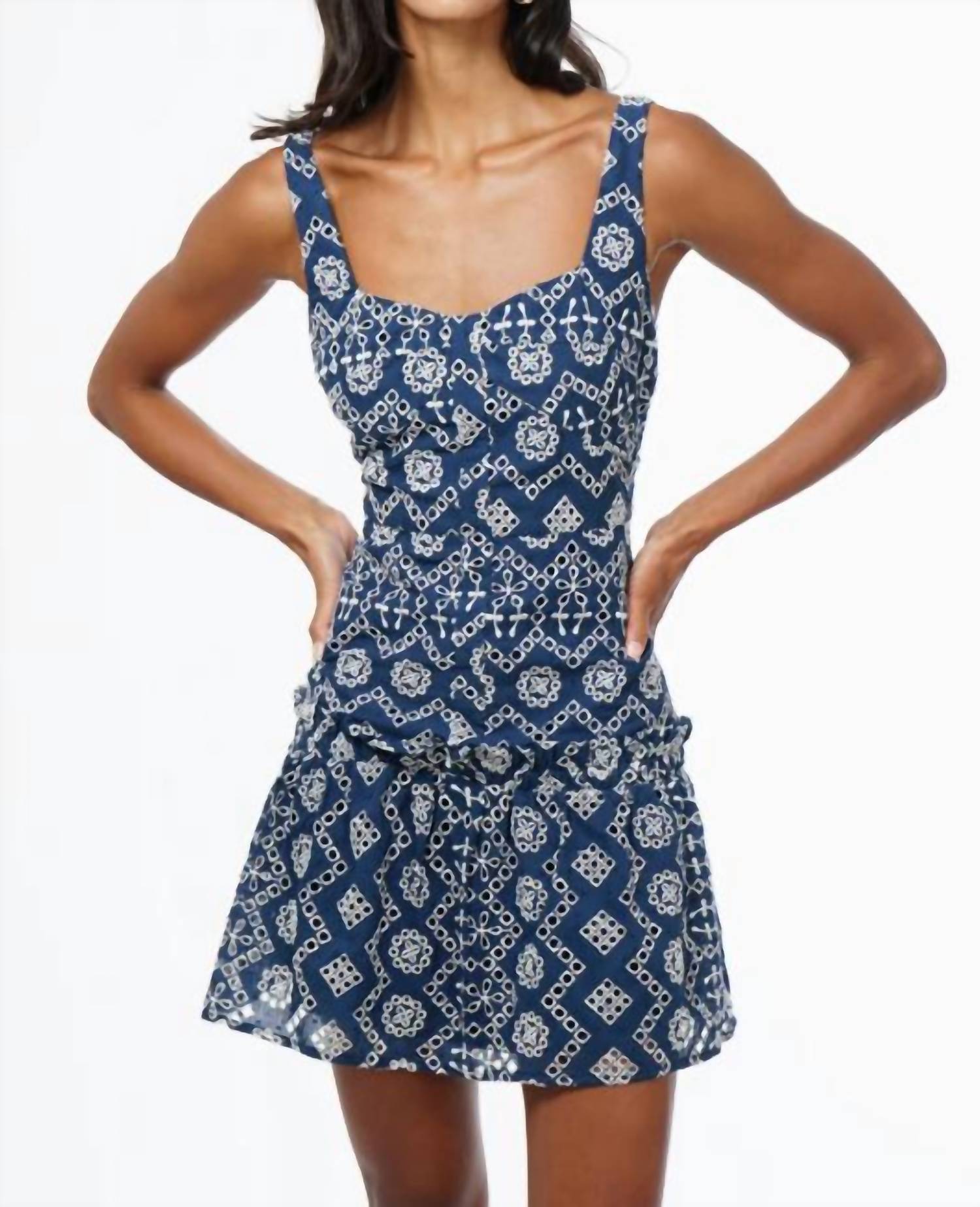 Introducing the Women's Vanni Mini Dress by Adelyn Rae, a perfect choice for your summer vacation wardrobe with its striking blue floral pattern. This fit and flare mini dress features a stylish squareneck and sleeveless design, capturing a modern maximalist trend. Closure: Zip closure. Ideal for those sunlit getaways, this dress combines ease and elegance effortlessly. Self - 100% CottonLining - 100% Rayon