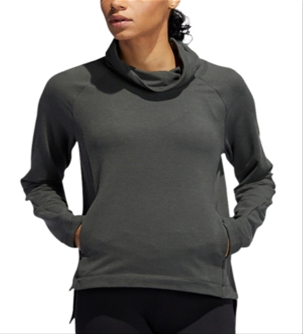 Suéter feminino de manga comprida com gola alta, cinza, tamanho grande, da Adidas