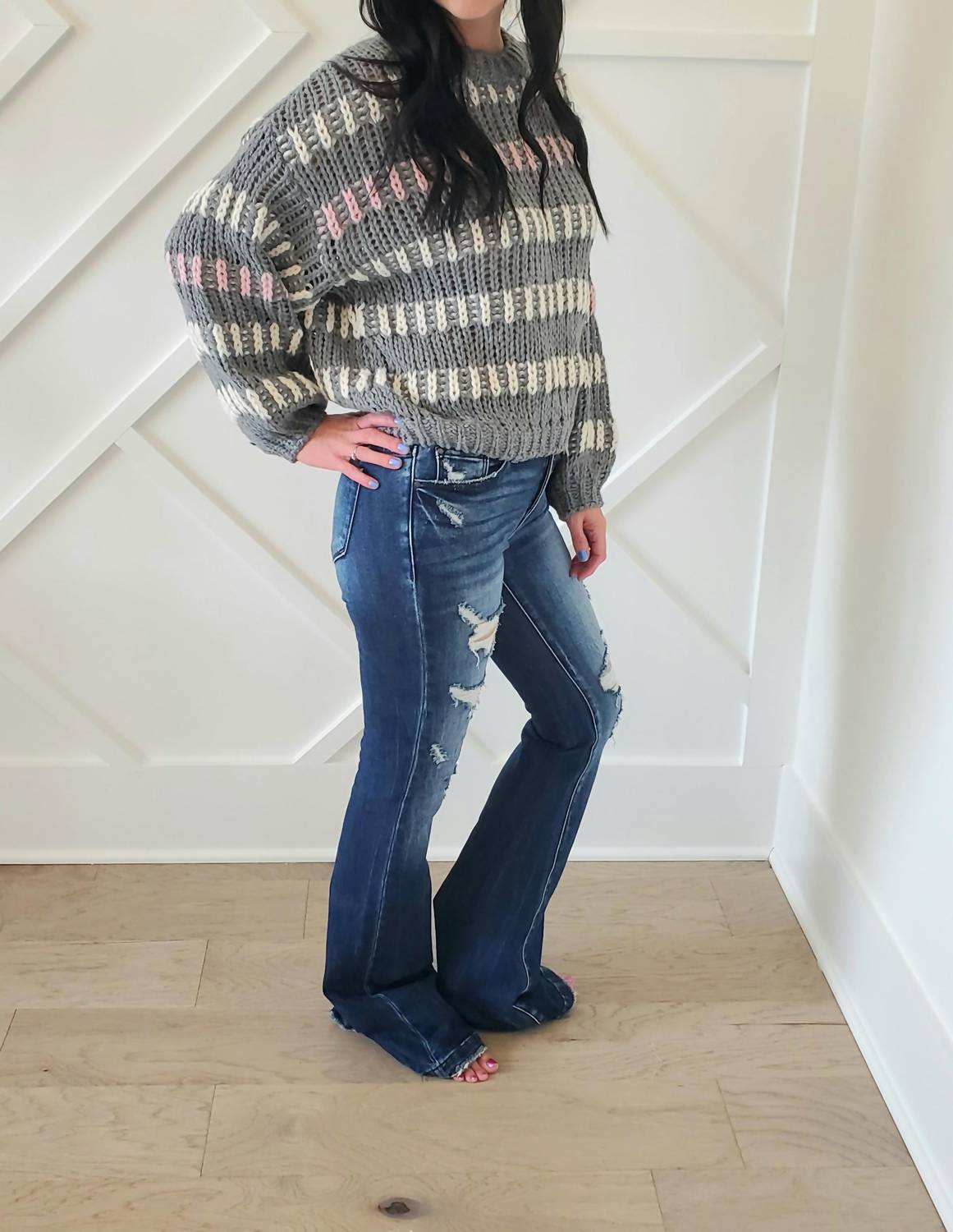 Elevate your fall wardrobe with the Puffy Sleeve Chunky Knit Sweater by ADORA in a stylish Grey/multi hue. Designed with long puffy sleeves and a textured crewneck, this sweater offers a cozy and fashionable look. Composition: 100% Polyester. Closure: Pull on. Perfect for travel and Thanksgiving occasions, this 90s fashion-inspired piece ensures comfort and trendiness.