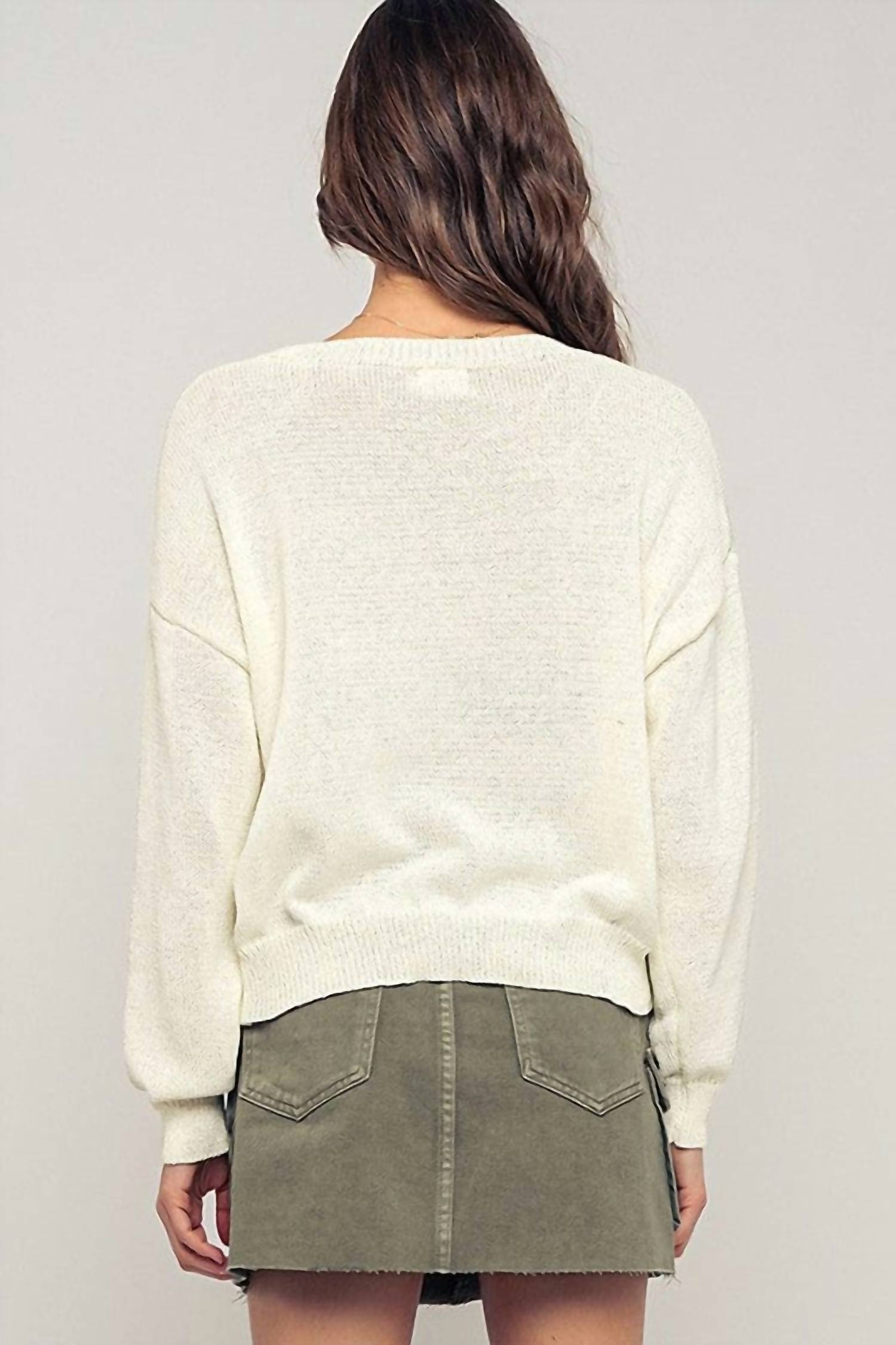 The ultimate go-to sweater, expertly crafted to provide the perfect combination of warmth and style. Its classic design and soft fabric make it a must-have addition to your wardrobe. Introducing the Tide & Knit Sweater by ADORA, a minimalist and stylish piece in a warm beige hue perfect for fall travel and Thanksgiving gatherings. This long sleeve, lightweight crochet sweater is crafted from 100% Polyester and features a playful "BEACH" embroidery across the front. With its relaxed fit and ribbed trim, this pull-on sweater offers a textured crewneck design that embodies laid-back coastal vibes. Made in China, this piece is ideal for those cool evenings by the sea or casual days out. Model is wearing a size small, standing at 5'9".
