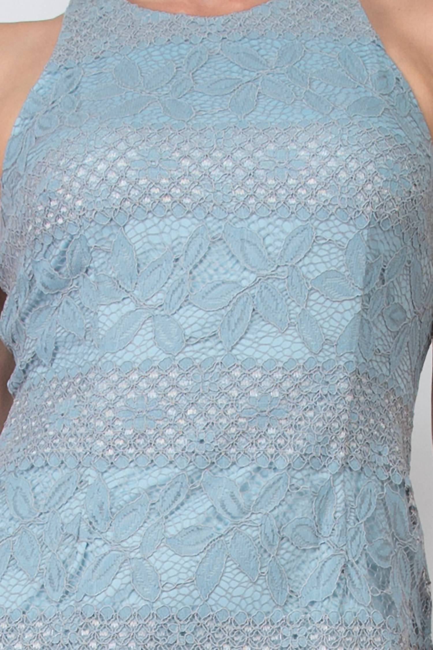 The perfect mini dress for those warmer months. Embrace timeless elegance with the Adrianna Papell Crewneck Racer Zipper Back Lace Dress in captivating blue lilac. This sleeveless mini dress features a classic crewneck and intricate lace pattern that enhances your silhouette with a contemporary sheath design. Crafted from 40% Viscose, 25% Cotton, 25% Nylon, 10% Polyester, it ensures comfort and style for cocktail parties or Easter gatherings. The modern zip closure and dry clean care make it a versatile piece, perfect for standing out with quiet luxury.