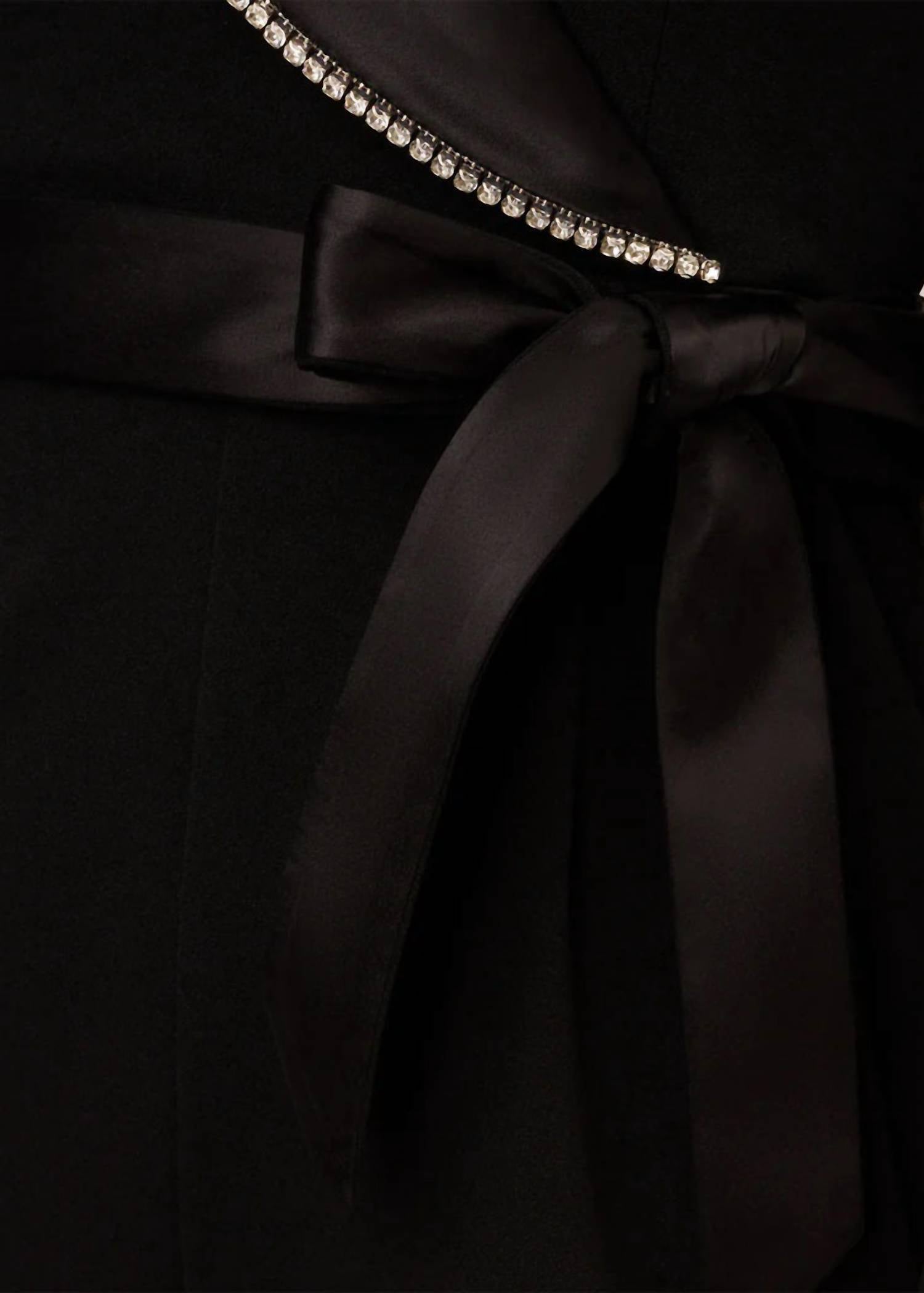 Adrianna Papell - Long Sleeve Embellished Collar Knit Crepe Jumpsuit