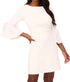 This timeless A-line dress blends classic style with modern touches, featuring a graceful boat neckline and three-quarter bell sleeves. Crafted from stretch crepe for a flattering, comfortable fit, it’s elegantly finished with feather-trimmed cuffs for a hint of glamour. Perfect for cocktail parties, weddings, and any special occasion where you want to make a stylish impression.