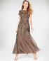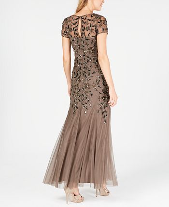 Vestido trompete feminino Adrianna Papell com bordado floral e contas, marrom chumbo, tamanho 4