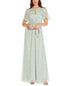 Amarrações na cintura e um decote cavado dão um toque especial ao vestido longo de jacquard floral de Adrianna Papell. | Aproximadamente 62 de comprimento, do centro do pescoço até a bainha. O comprimento é baseado no tamanho 4 e varia 1/4 entre os tamanhos. | Vestido formal longo | Jacquard; Texturizado e estruturado | Decote redondo; Silhueta ajustada e ampla | Fechamento por zíper nas costas | Mangas esvoaçantes
