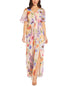 Emoldurado por mangas esvoaçantes, este vestido sobrepeliz Adrianna Papell apresenta uma fenda que deixa as pernas à mostra e eleva-se a um nível fresco de toque floral vibrante. Aproximadamente 62 de comprimento do ombro à bainha. O comprimento varia 1/4 entre os tamanhos. Vestido formal longo. Decote em V sobrepeliz; Silhueta do vestido. Zíper oculto no centro das costas. Mangas esvoaçantes até o cotovelo.