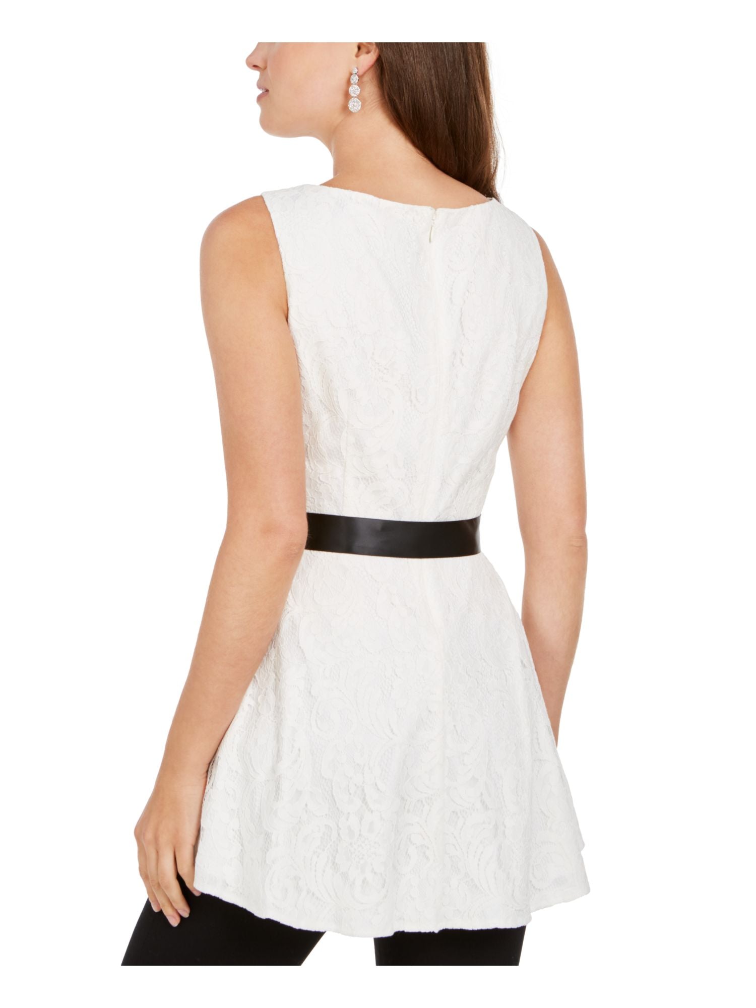 Adrianna Papell Blusa feminina peplum sem mangas com decote em joia e renda, branca, tamanho 14