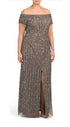 Vestido de festa feminino Adrianna Papell com decote ombro a ombro e contas, marrom, tamanho 10