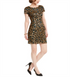 Vestido feminino Adrianna Papell com estampa animal e lantejoulas, manga curta, preto - dourado, tamanho 8