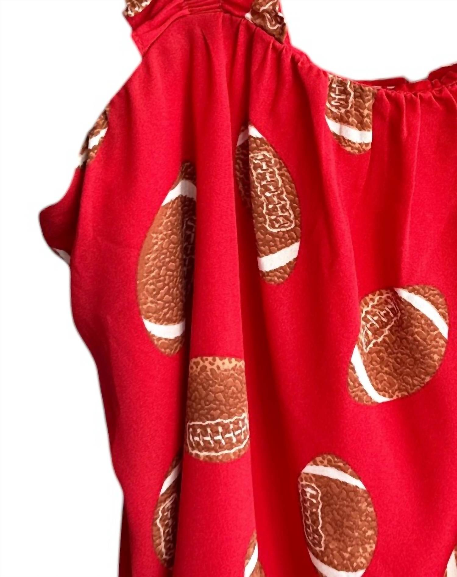 The perfect tank top for those warmer weather seasons. Celebrate game day in style with the Women's Football Ruffle Tank Top by ADRIENNE. This sleeveless design features a playful ruffle detail and elastic strap, accentuating its dynamic squareneck design. Crafted from 100% polyester, this swing tank in a bold graphic pattern is perfect for summer streetwear and 4th of July celebrations. With a convenient pull-on closure, it requires hand washing to maintain its vibrant red hue.