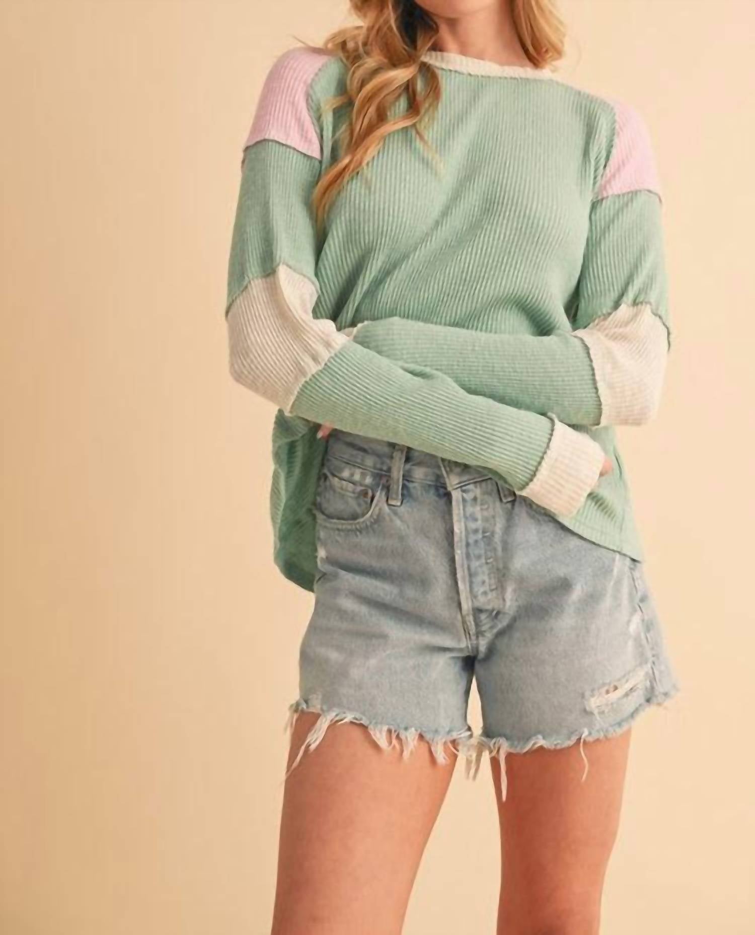 Aemi + Co - Sage Colorblock Long Sleeve Top