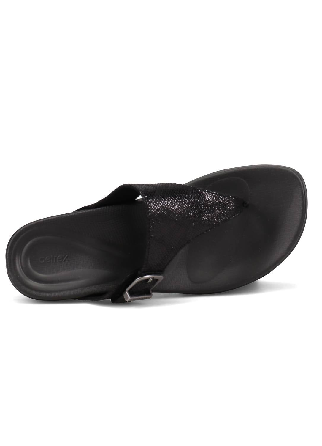 Cabedal em couro sintético de fácil manutenção e resistente à água. Tira ajustável em velcro no peito do pé para um ajuste seguro. Altura do salto: 1,25.