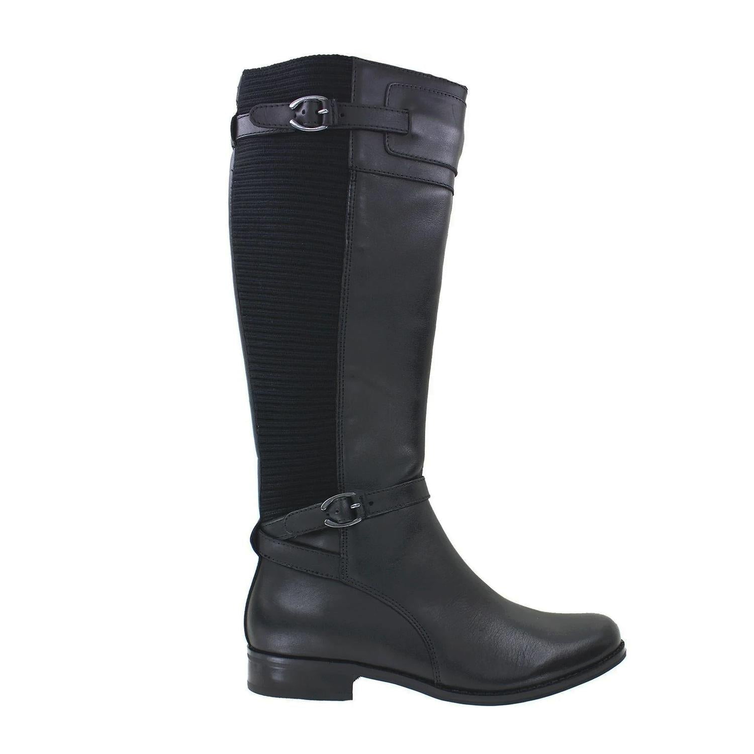 Introducing the Women's Chelsea Riding Boot by Aetrex, a stylish black over-the-knee boot designed for comfort and support. Crafted with a built-in Lynco® orthotic for arch support, balance, and alignment, these boots feature memory foam cushioning and anti-microbial technology for freshness. The stretch sweater material and adjustable calf strap ensure a perfect fit while the half-way side zipper and adjustable buckles offer easy wearability. This minimalist piece is perfect for spring, featuring a low 1" leather stacked heel for added elegance.