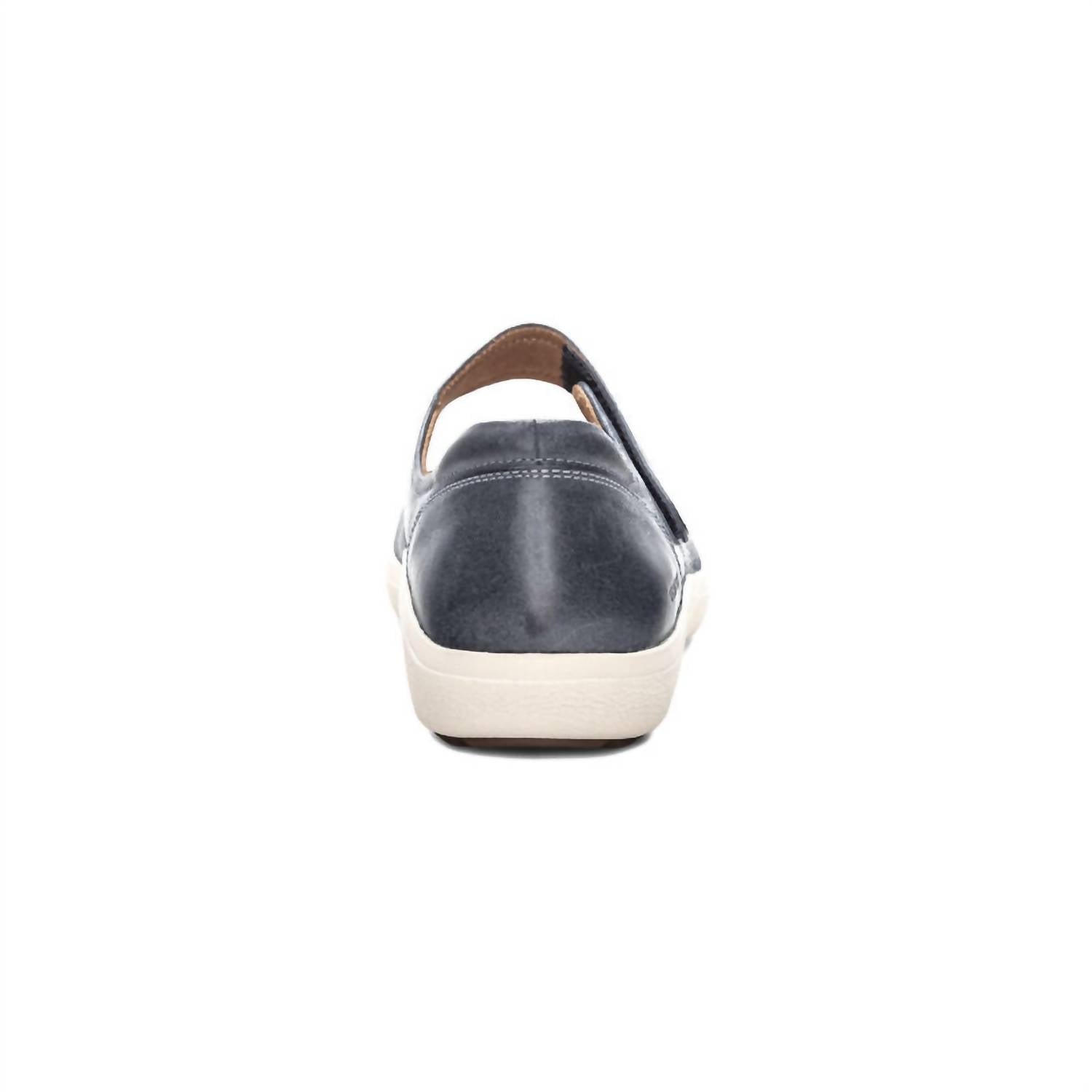 Os tênis Erica da Aetrex combinam estilo casual com conforto para o dia a dia. Inspirados no design da Mary Jane, estes tênis azul-marinho contam com tira ajustável de velcro para um ajuste seguro. Cabedal em couro, entressola leve em espuma EVA e solado de borracha proporcionam durabilidade e estabilidade. Com salto de 3,1 cm e sistema ortopédico Aetrex integrado, eles oferecem suporte para o arco do pé e alívio de pressão para uma ótima usabilidade.