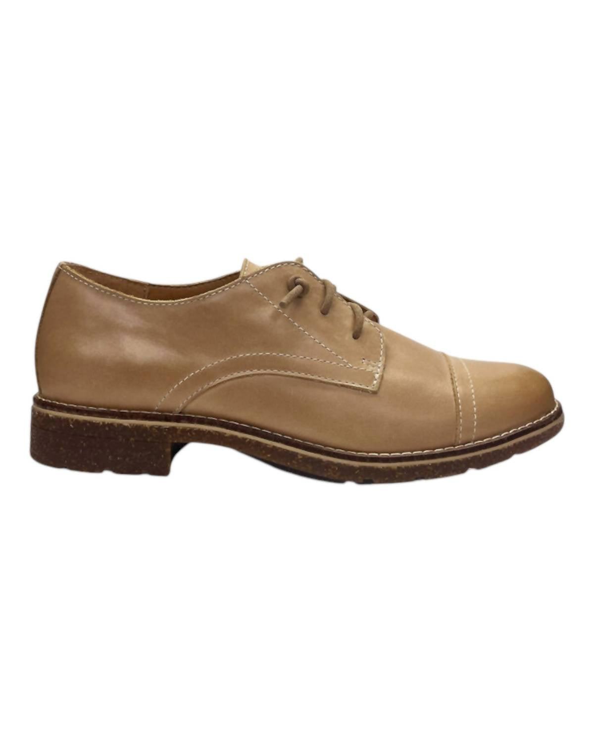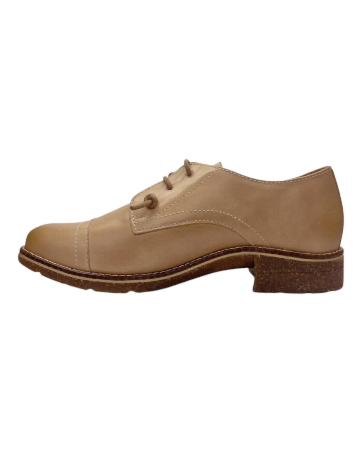 Um sapato Oxford feminino slip-on com reforço oculto para facilitar o calce, 100% couro com solado leve de cortiça e borracha. Limpe com um pano úmido e deixe secar naturalmente para manter a qualidade.