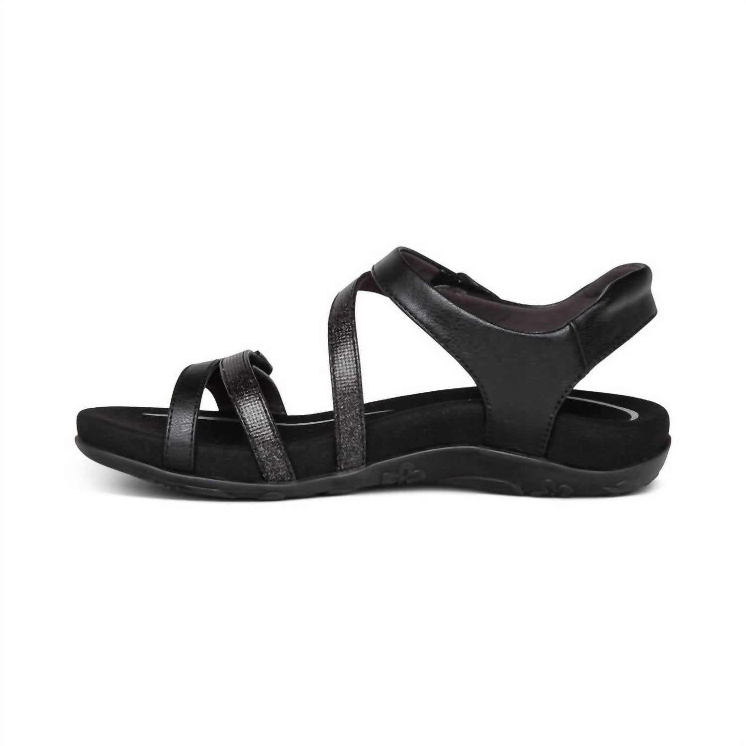 O suporte do arco ajuda a estabilizar e alinhar os pés. O suporte do arco ajuda a aliviar dores comuns nos pés e fascite plantar. A palmilha de espuma viscoelástica proporciona amortecimento e conforto. Ajustabilidade: Fecho de velcro. Material do cabedal: Couro sintético. Material da entressola: Espuma viscoelástica para amortecimento extra. Material do forro da palmilha: Microfibra macia tratada com tecnologia antimicrobiana para ajudar a combater os odores do dia a dia. Material do solado: Borracha para maior durabilidade. Palmilha removível: Nenhuma. Altura do salto: 2,8 cm. Borda acolchoada para maior conforto.