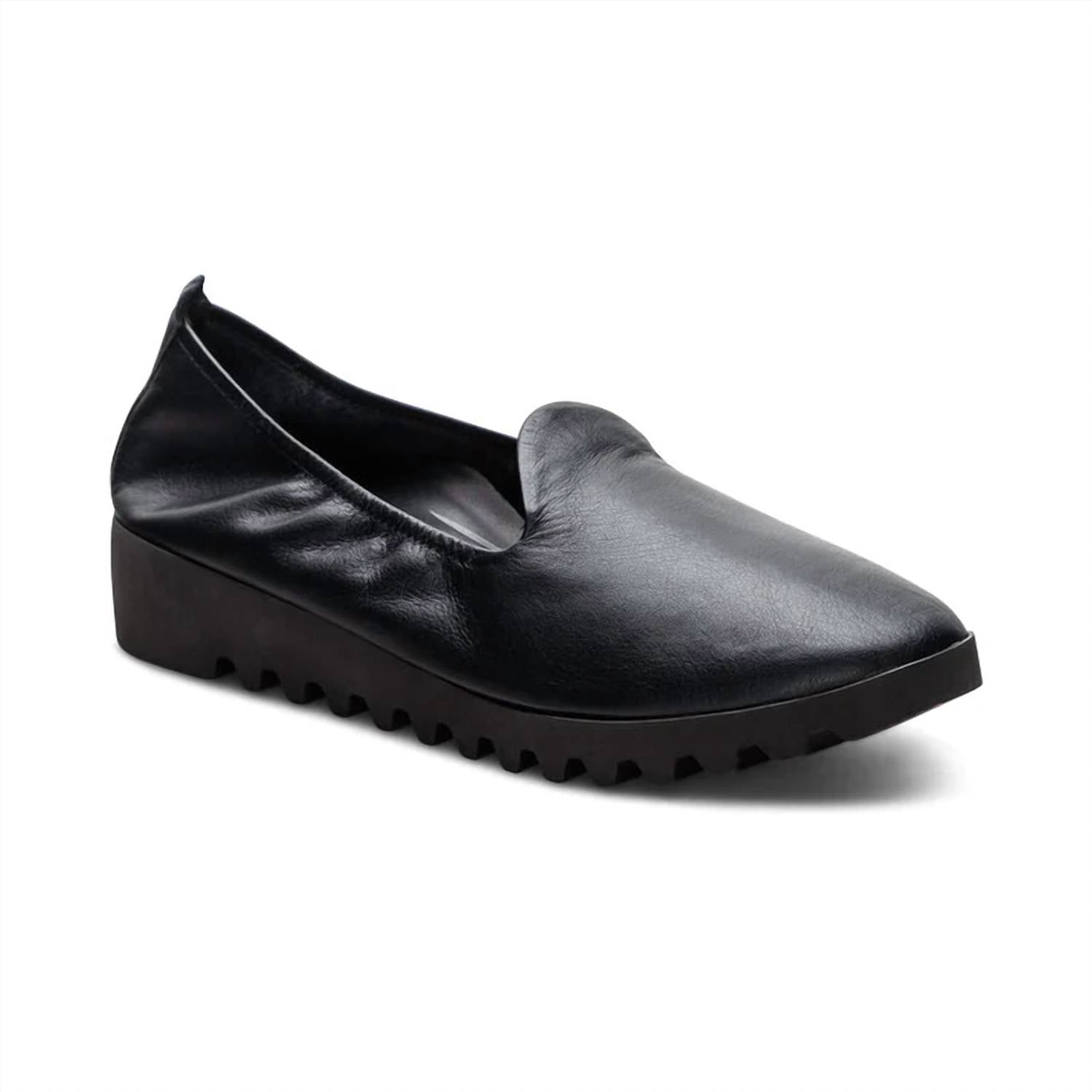 Mocassins tão versáteis que você pode usá-los com praticamente qualquer coisa. Apresenta cabedal em couro macio com elástico na parte superior para um ajuste perfeito e solado de borracha para maior durabilidade. Aproveite os benefícios do Sistema Ortopédico Aetrex integrado com palmilha de espuma viscoelástica com tecnologia SkyLite, proporcionando suporte essencial para o arco do pé e alívio das dores comuns nos pés. Calce este elegante mocassim preto com bico amendoado e salto modesto de 4 cm, perfeito para uso diário.