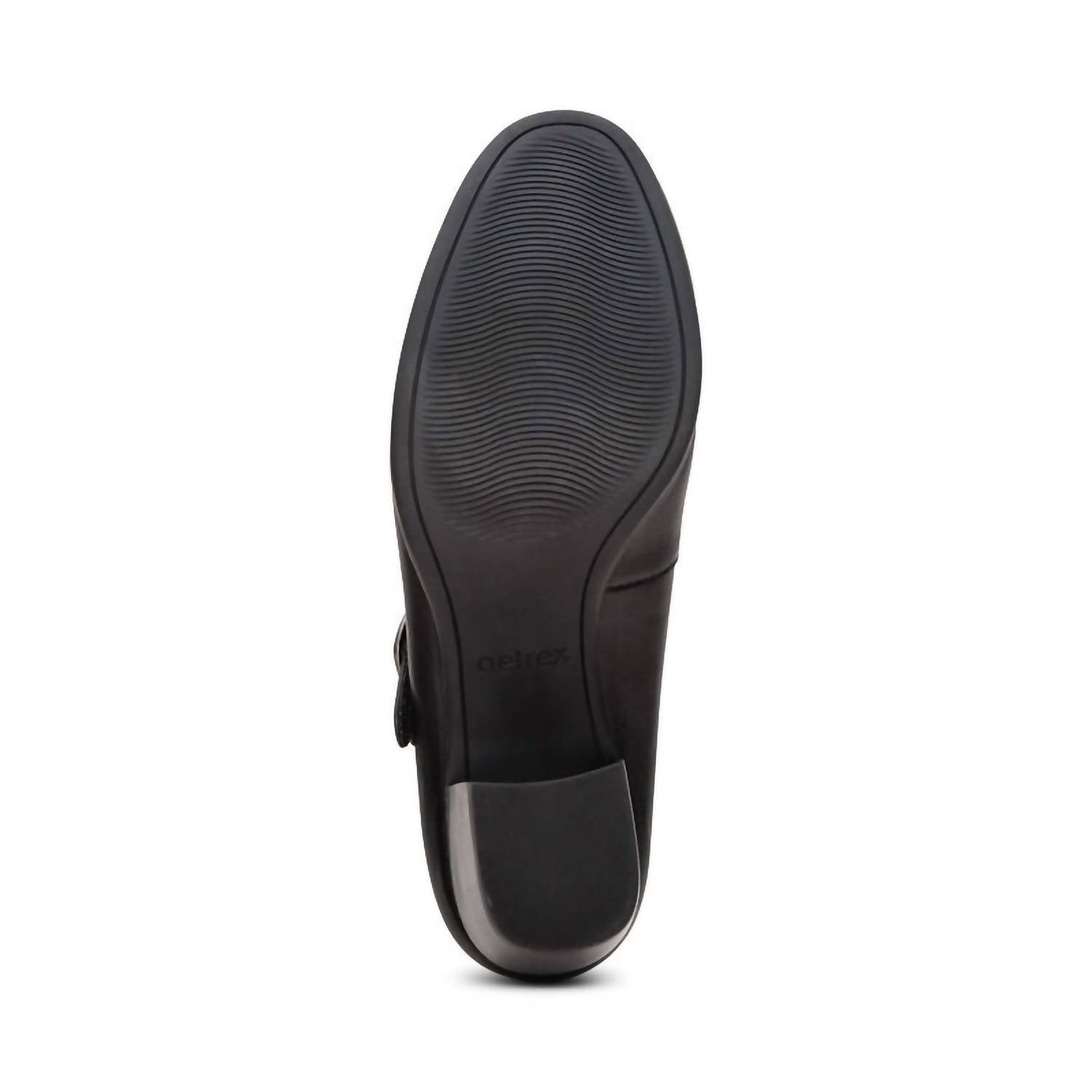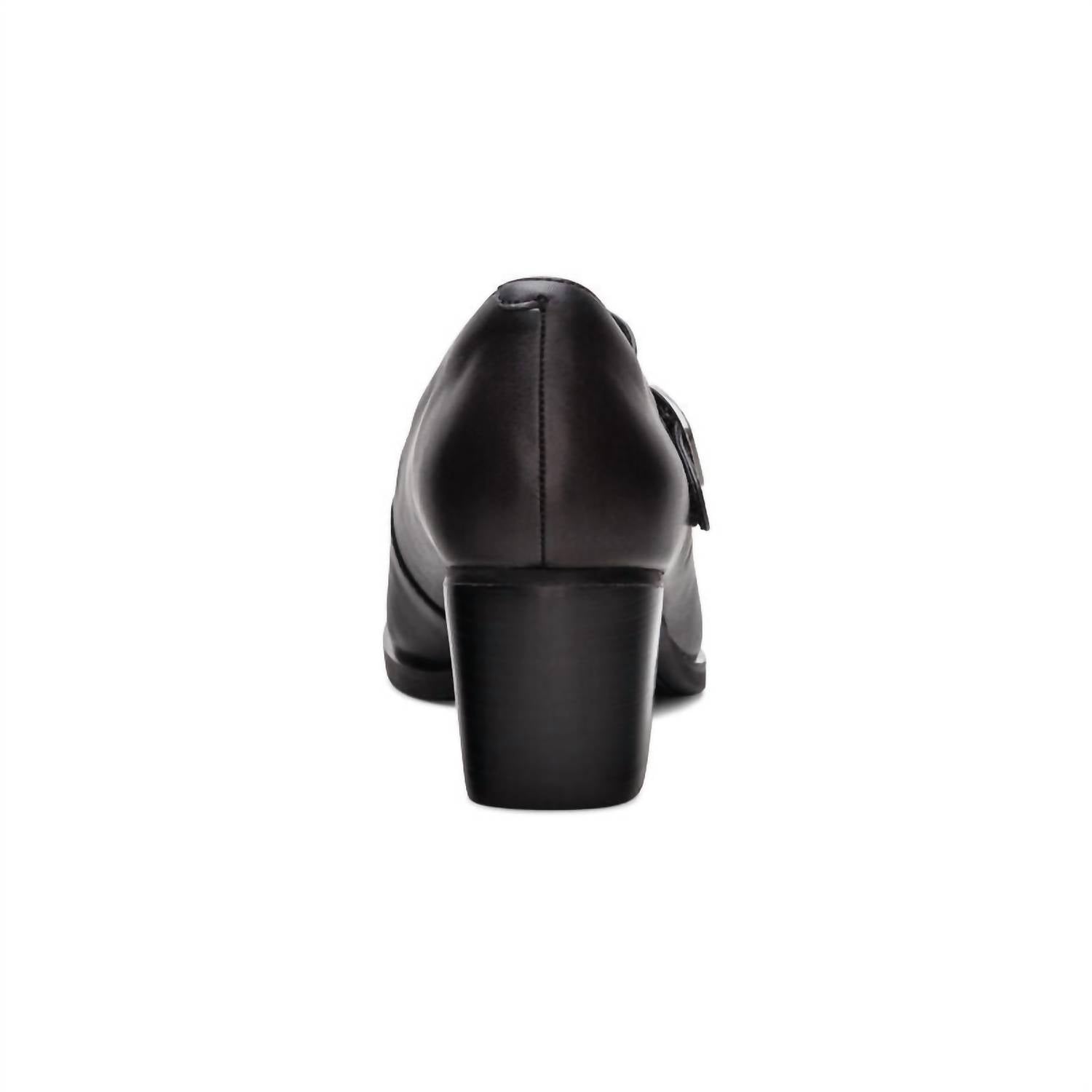Os saltos Aetrex Sara Pump em couro preto oferecem um visual estiloso com conforto integrado. Com o Sistema Ortopédico Aetrex para suporte do arco e amortecimento UltraSky™, eles proporcionam alívio de pressão a cada passo. A tira ajustável Mary Jane com velcro e o cabedal elástico garantem um ajuste personalizado, enquanto a palmilha removível acrescenta praticidade. O salto bloco de 5,7 cm e o solado de borracha proporcionam estabilidade e elegância para um uso versátil.