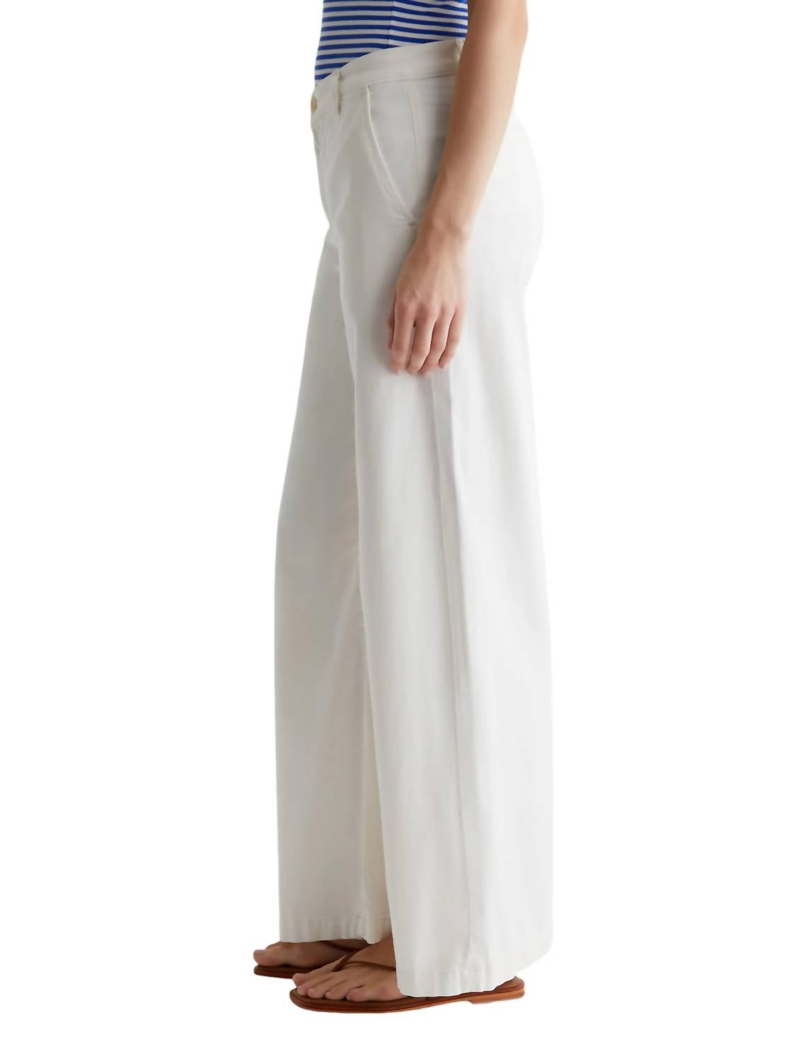 Tão fofas quanto confortáveis. Estas calças jeans de perna larga apresentam um caimento relaxado nos quadris e um corte solto e amplo nas pernas, proporcionando uma silhueta confortável e estilosa. Confeccionadas em sarja de algodão elástica Tencel de 6,2 oz na cor branco pó, são macias, leves e compostas por 60% Lyocell, 38% algodão e 2% elastano/elastano. Completas com bolsos frontais inclinados e bolsos traseiros embutidos, elas oferecem forma e funcionalidade. Para referência, a modelo está vestindo tamanho 26, com medidas que incluem 26 cm de comprimento frontal, 59 cm de abertura no joelho, 63 cm de abertura na parte inferior e 73 cm de costura interna.
