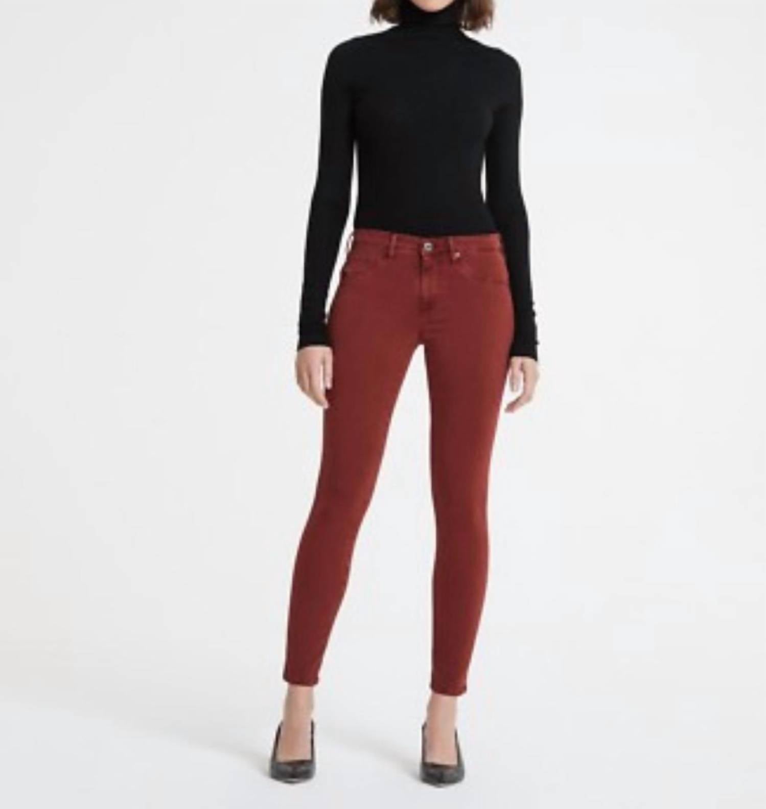 The perfect skinny jeans to wear with your favorite boots this season! Add a bold pop of color to your wardrobe with the AG Adriano Goldschmied Legging Ankle Jeans in Rich Crimson (Style LSS1389). One of AG’s most loved silhouettes, these super-skinny ankle-length jeans are crafted from a soft, premium stretch denim blend designed for comfort, flexibility, and a flattering, body-hugging fit. The Rich Crimson wash offers a vibrant, modern red tone that pairs beautifully with neutrals, denim jackets, and seasonal layers. Whether styled casually with sneakers or elevated with heels, these jeans bring effortless style to any outfit. Details: • Brand: AG Adriano Goldschmied • Style: Legging Ankle (LSS1389) • Color: Rich Crimson / Red • Fit: Super Skinny Ankle • Fabric: 60% Cotton, 30% Modal, 8% Polyester, 2% Polyurethane • Made in Mexico of imported fabrics • Size: 27 Why You’ll Love Them: • Soft, stretchy, comfortable fit • Flattering sculpted silhouette • Rare and highly sought-after color • Perfect for year-round styling