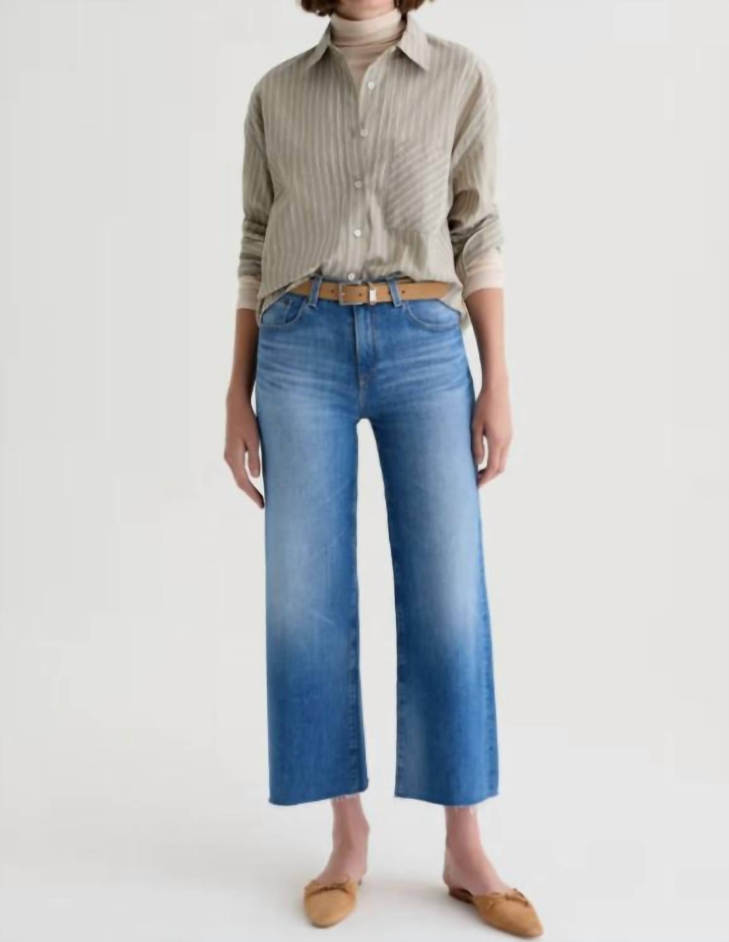 These classic light wash jeans are perfectly faded with raw hems and distressing at the coin pocket! Featuring a wide leg silhouette, a cropped length, and a high rise waist for an elevated denim style.