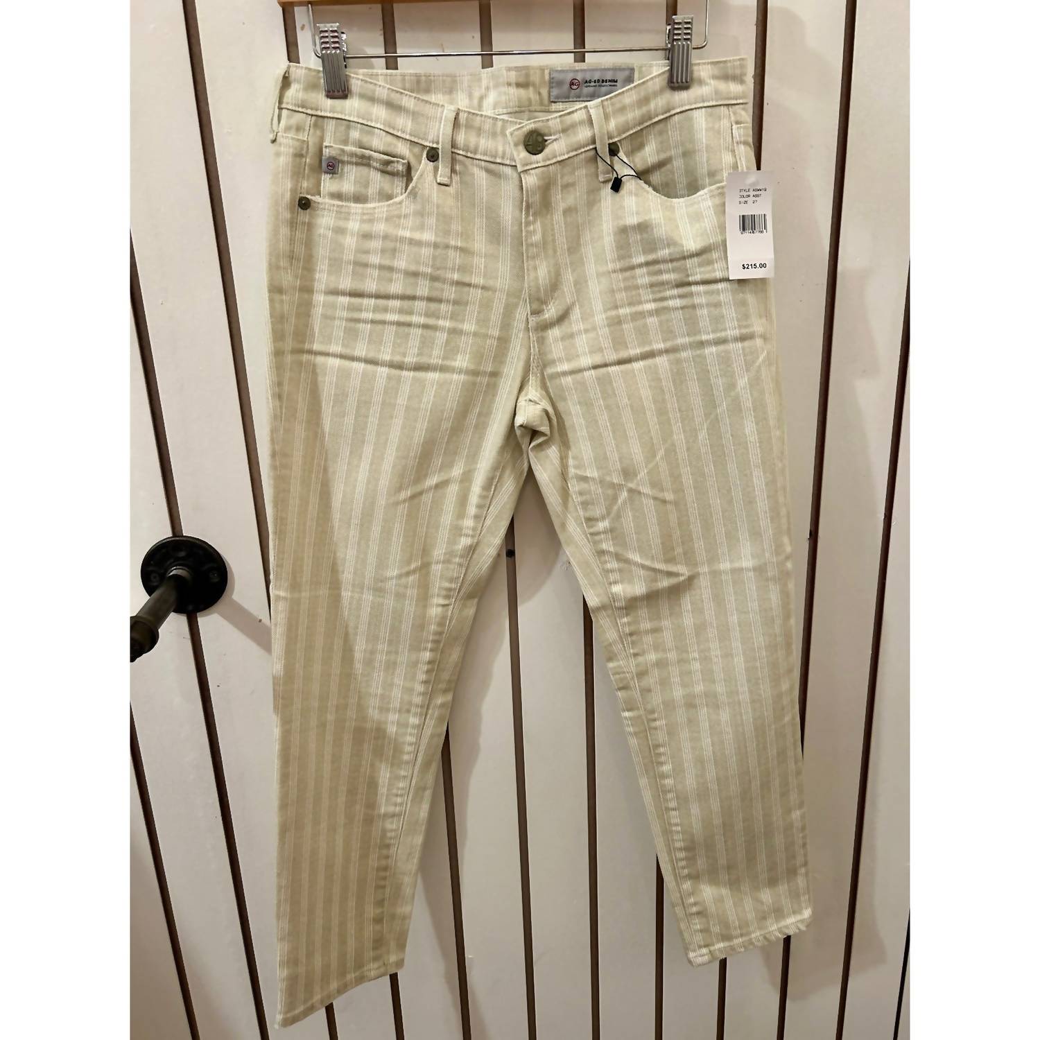 Upgrade your wardrobe with the Stripe Ankle Jean by AG Jeans, a chic and versatile addition in a sophisticated sand color. Featuring a trendy stripe pattern, these stylish jeans offer a relaxed fit complemented by a straight leg style. Crafted in high-quality denim, they are designed with practicality in mind, offering pockets and a secure zip closure. Care: Machine wash and tumble dry, making these jeans not only fashionable but also easy to maintain.