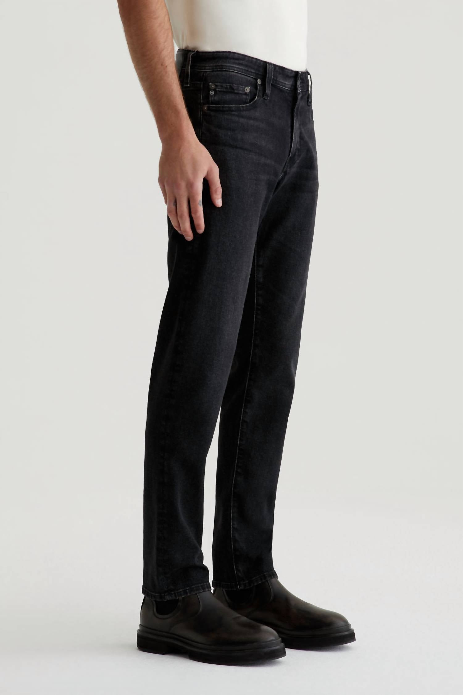 Enhance your collection with the Tellis Slim Straight Jeans by AG Jeans, crafted for a modern and sleek look. These men's jeans feature a slim fit with a straight leg, made from 93% Cotton, 6% Polyester, and 1% Elastane, ensuring comfort and a perfect fit. Designed with a fitted upper block and tapered leg opening in a solid Vp Monarch color, they include practical five-pocket styling. Closure: Zip. Care: Machine wash and tumble dry.