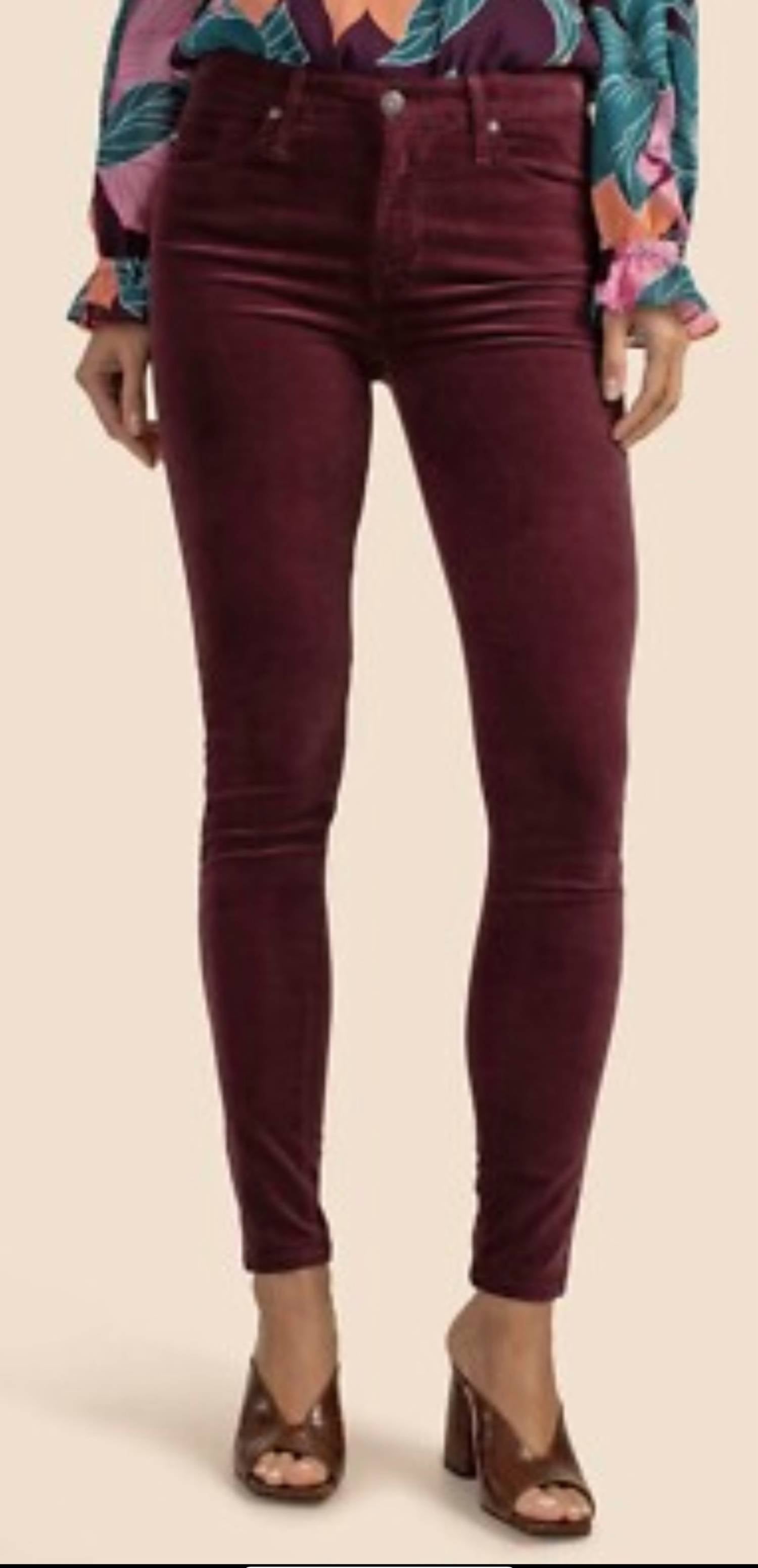 A skinny jean that is both flatering and comfortable. We love this style because it works great with boots, or without! Elevate your fall and winter wardrobe with the AG Jeans Farrah Skinny Ankle Corduroy Pants in OSV (Overcast Velvet). Crafted in a rich, plush corduroy with a beautiful deep burgundy/wine tone, these pants offer a flattering skinny-ankle silhouette with soft stretch for all-day comfort. The Farrah is one of AG’s best-selling fits, known for its sleek, body-hugging shape and effortless versatility. This rare OSV colorway adds a warm, elegant pop of color that pairs perfectly with sweaters, blouses, boots, and seasonal layers. Details: • Brand: AG Adriano Goldschmied • Style: Farrah Skinny Ankle • Fabrication: Soft, stretchy corduroy • Color/Wash: OSV – Overcast Velvet (Burgundy Wine) • Size: 27 • Composition: 54% Cotton, 35% Lyocell, 8% Polyester, 3% Polyurethane • Mid-rise, skinny from hip to ankle • Made in Mexico of imported fabric Why You’ll Love Them: • Luxuriously soft corduroy • Rare AG color (high resale appeal) • Flattering and comfortable fit • Perfect for fall/winter ou