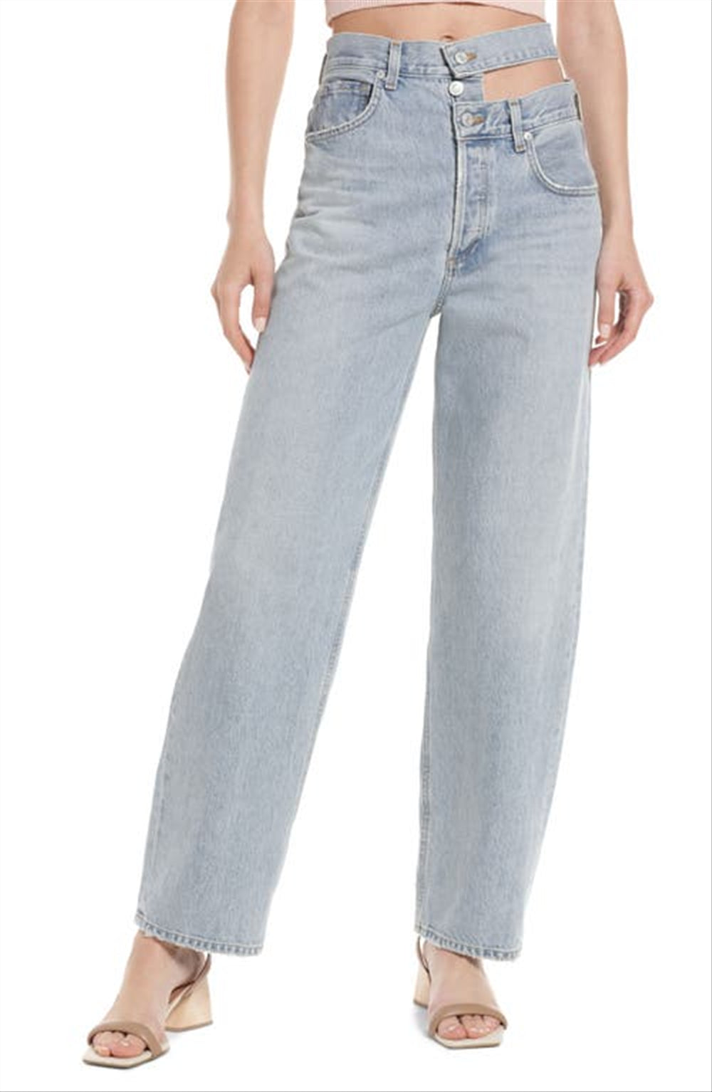 Calça jeans AGOLDE de algodão orgânico com cós quebrado e cintura super alta, tamanho 27, tamanho Sideline