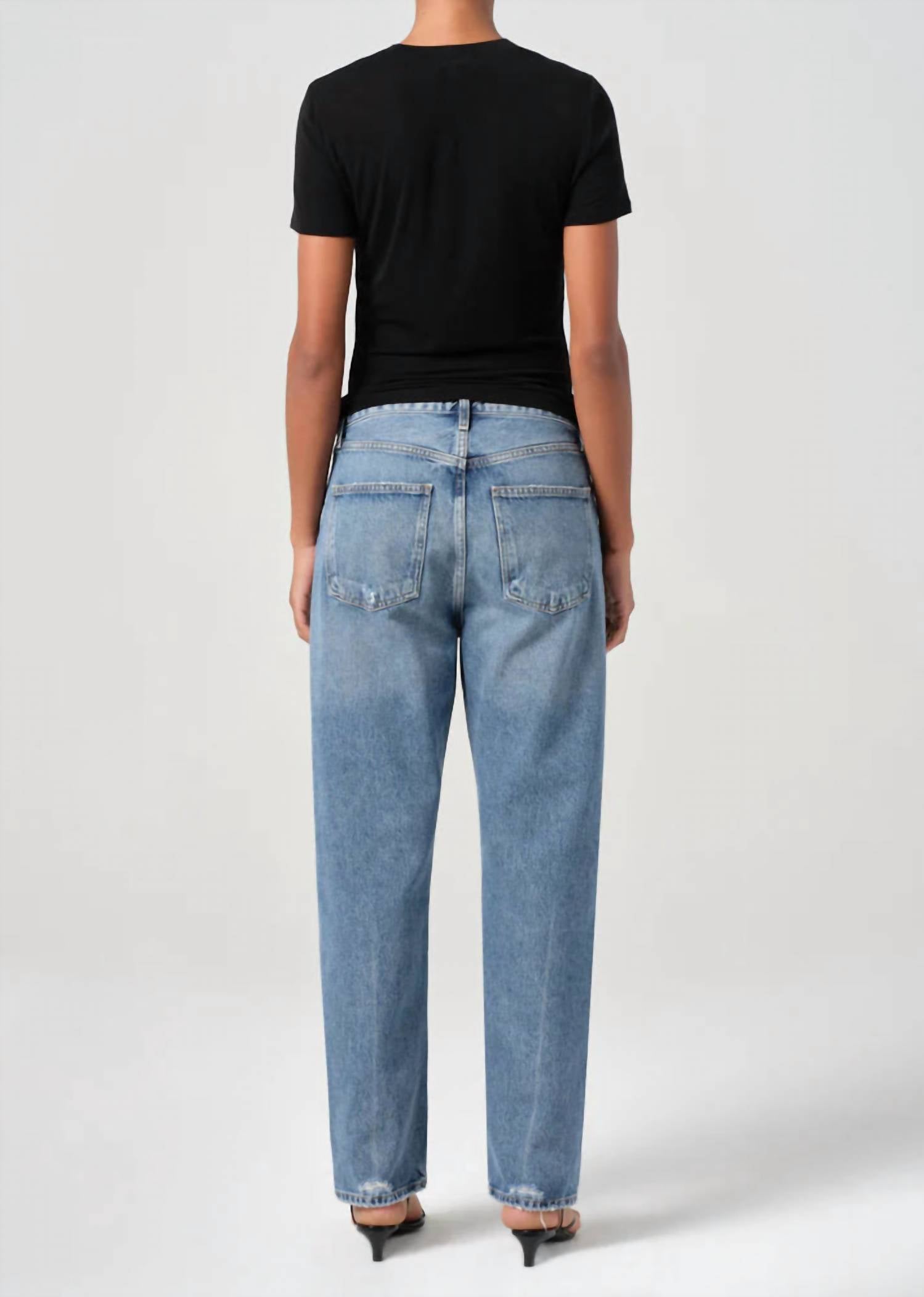 Introduce a touch of nostalgia to your wardrobe with the AGOLDE Classic Fit Straight Leg 90's Jeans in the alluring shade Hooked. Designed for women, these jeans feature a relaxed fit with a mid-rise waist and a straight leg style, ensuring comfort and timeless appeal. Crafted from 100% Cotton denim with practical pockets, they come with a zip closure for convenience. The jeans have a 26-inch inseam with a 12.5-inch rise, and are easy to care for with machine wash and tumble dry instructions. Perfect for a summer music festival or a casual 4th of July celebration.
