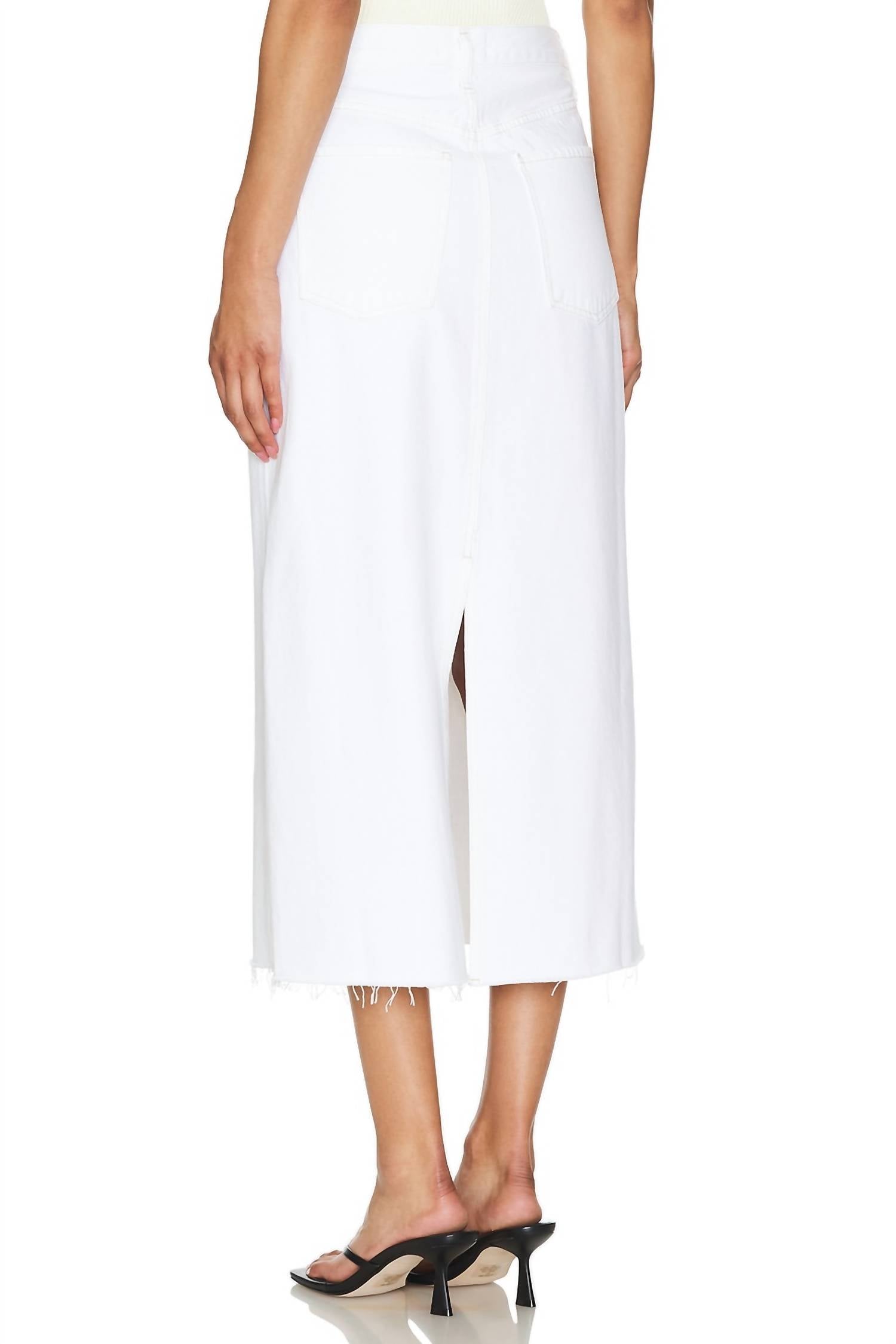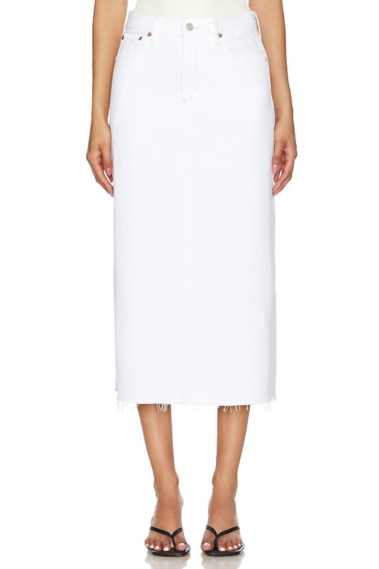 Exiba a quantidade certa de pele com esta saia midi lindamente desenhada. Apresentamos a Saia Della da AGOLDE, desenhada em um tom milkshake chique para uma elegância versátil. Esta saia midi 100% algodão é confeccionada na Turquia e apresenta uma fenda traseira contemporânea para maior estilo. Possui braguilha com zíper e botão para maior praticidade e funcionalidade, combinada com um design prático de 5 bolsos. Lavável à máquina para facilitar os cuidados, mede aproximadamente 49 cm na bainha mais curta e 81 cm na mais longa, oferecendo uma silhueta elegante para qualquer ocasião.