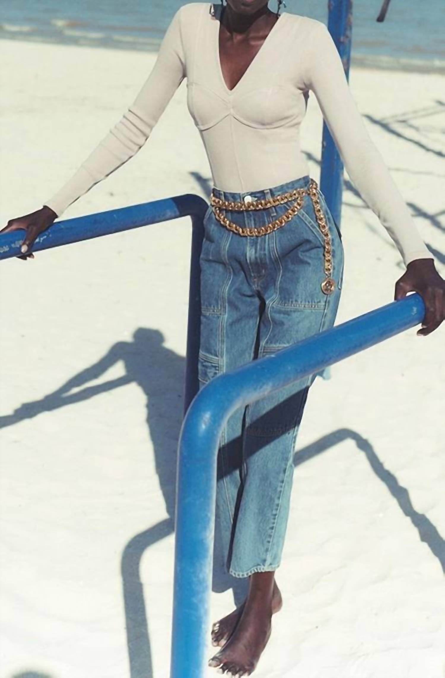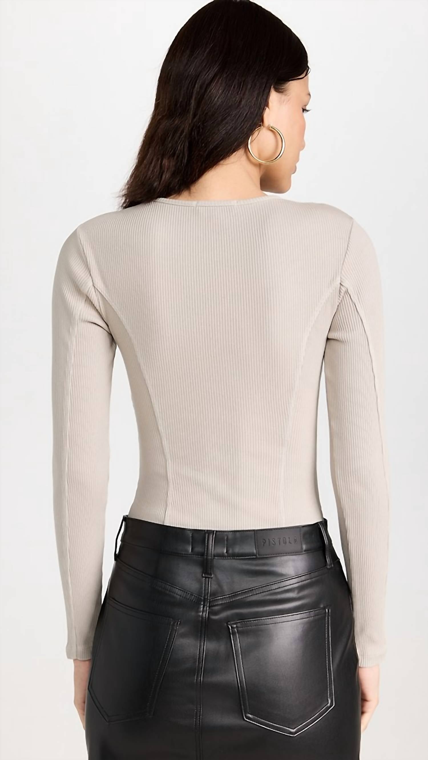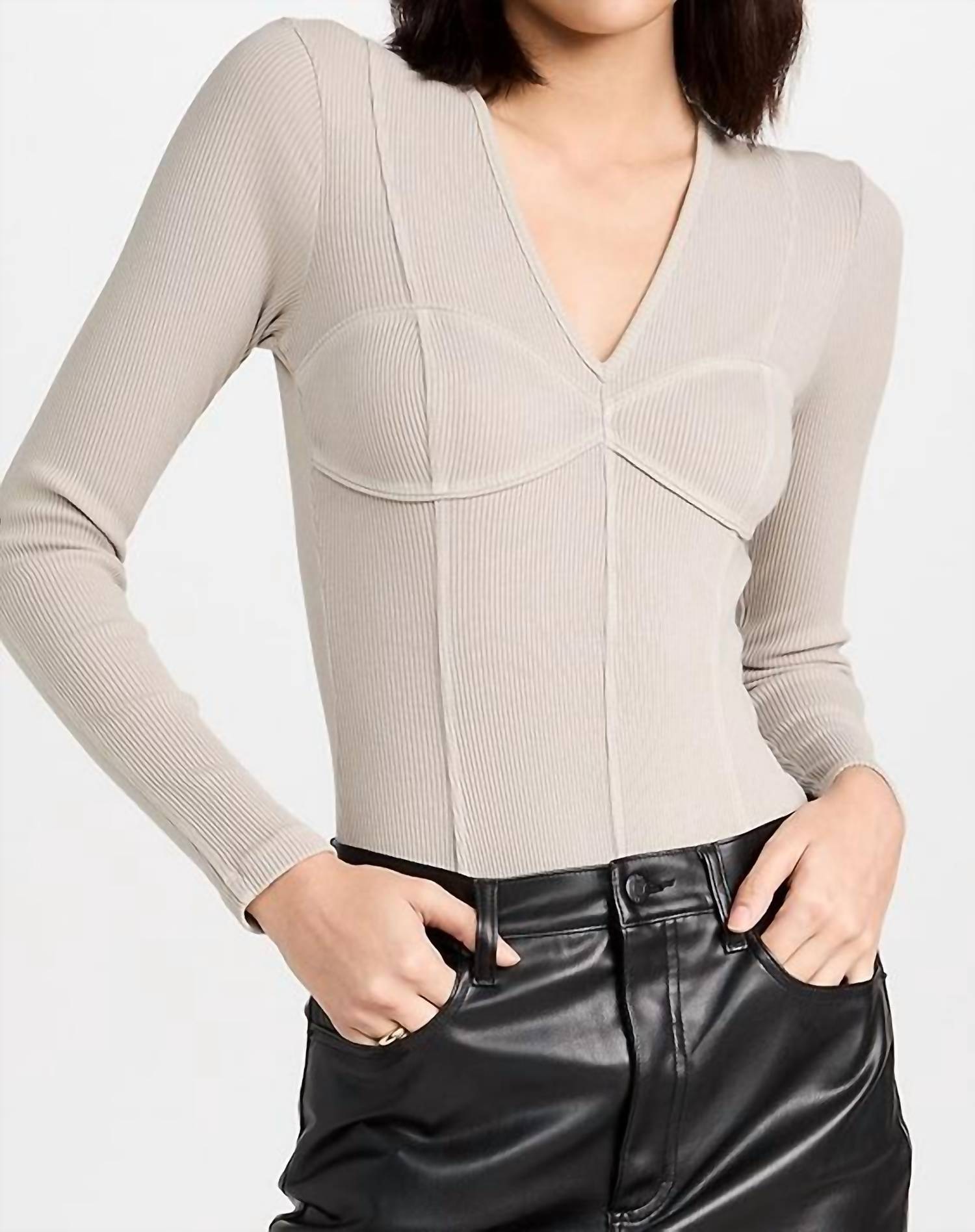 Dê um toque de elegância discreta ao seu guarda-roupa com o Body Devlin Thong da AGOLDE. Confeccionado em malha canelada luxuosa de peso médio, este body oferece um decote em V charmoso e mangas longas que equilibram perfeitamente sofisticação e conforto. As costuras elevadas e o detalhe de faixa no corpete elevam a silhueta geral e criam uma declaração sutil, porém chique. Fabricado nos EUA com uma mistura de alta qualidade de algodão, liocel e um toque de elastano, esta peça garante durabilidade e um ajuste perfeito. Combine-a sem esforço com seus jeans AGOLDE favoritos para um look completo e elegante. Calcinha fio dental com reforço de pressão. Composição: 49% algodão/49% liocel/2% elastano.