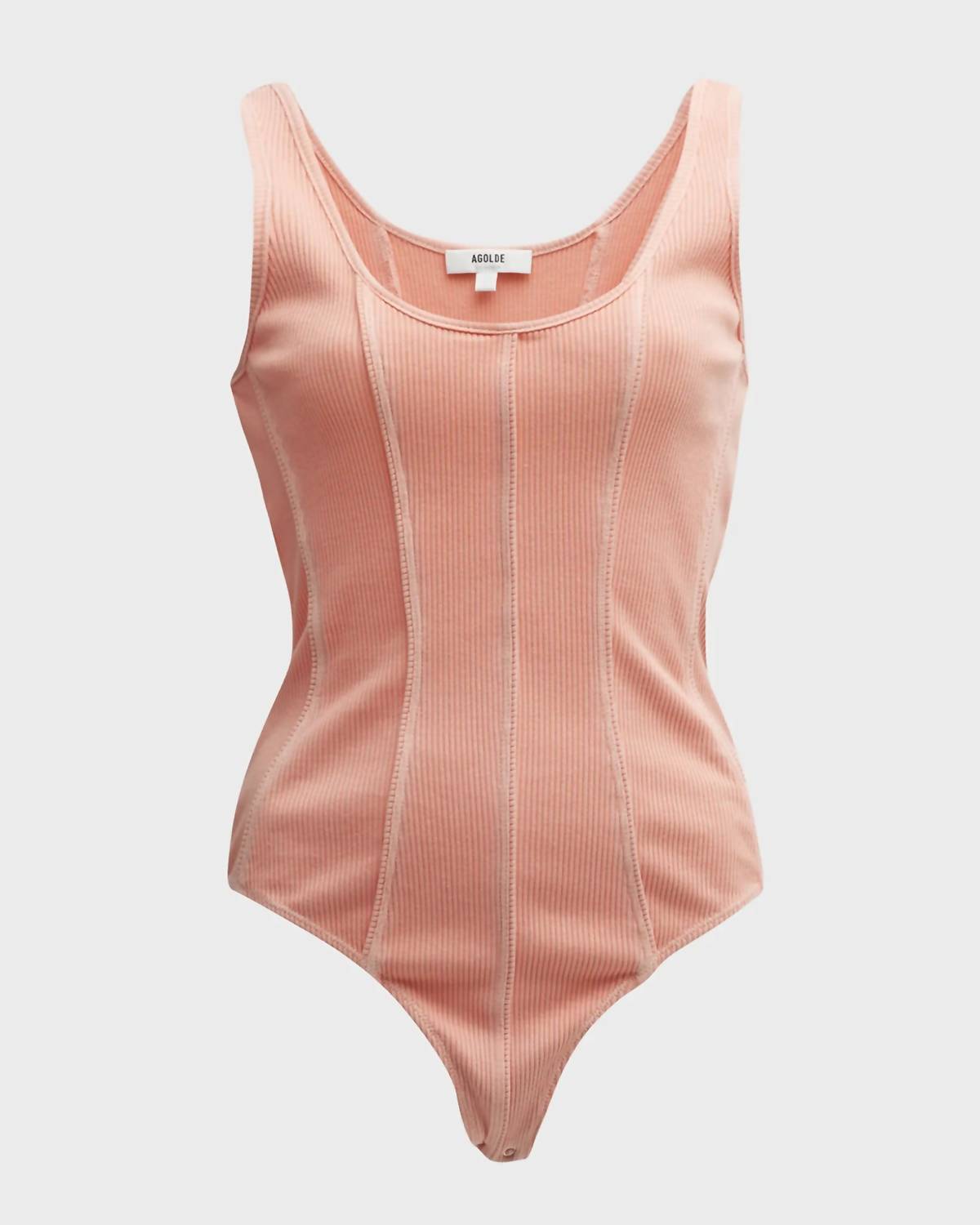 Ajustado e confortável, este body preenche todos os requisitos. 49% algodão orgânico, 49% tencel lyocell, 2% elastano. Body Elna em toranja. Canelado inspirado em espartilho em todo o corpo. Decote redondo. Sem mangas. Caimento justo. Fecho de encaixe por encaixe. O caimento é fiel ao tamanho. A modelo tem 1,77 m.