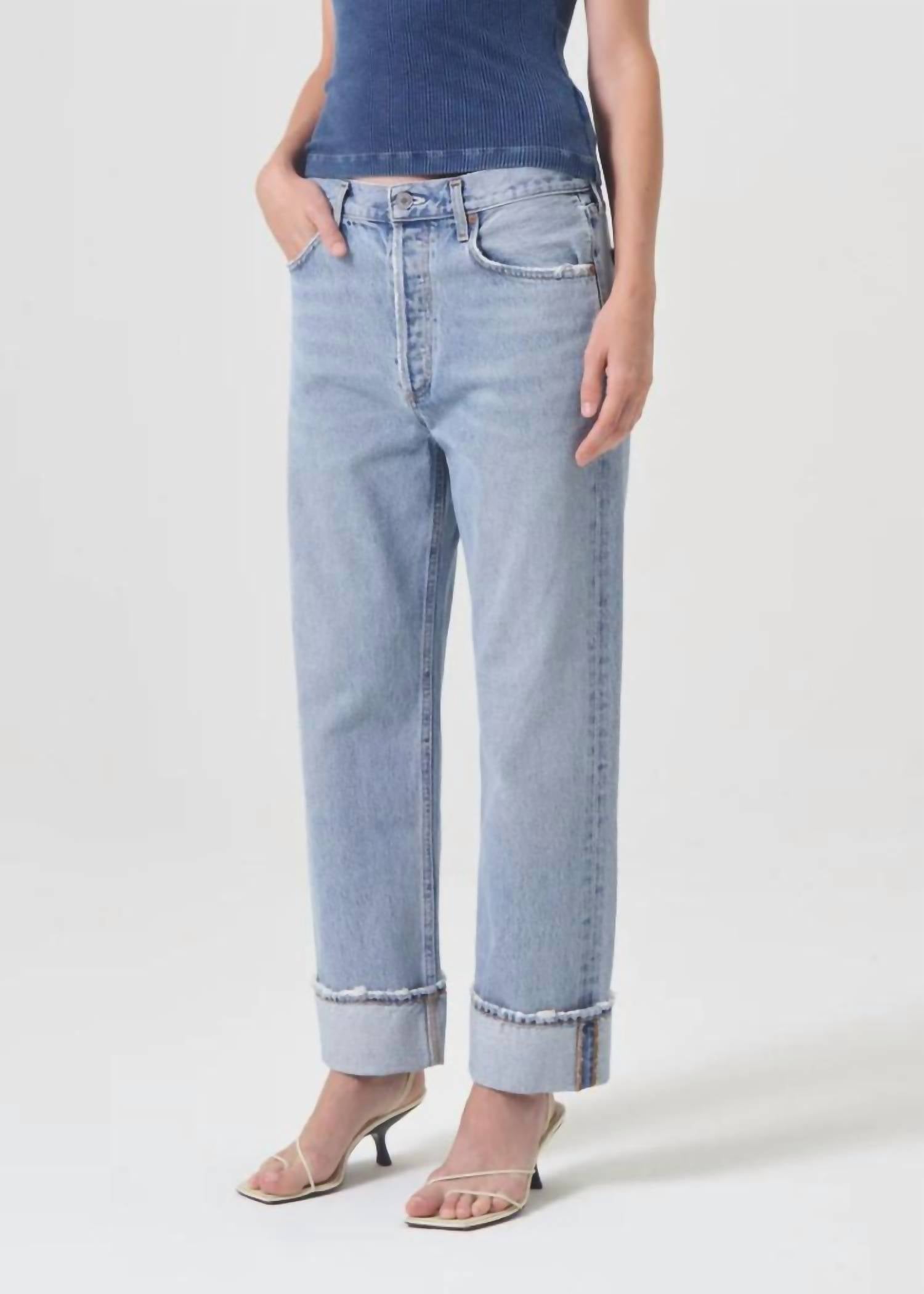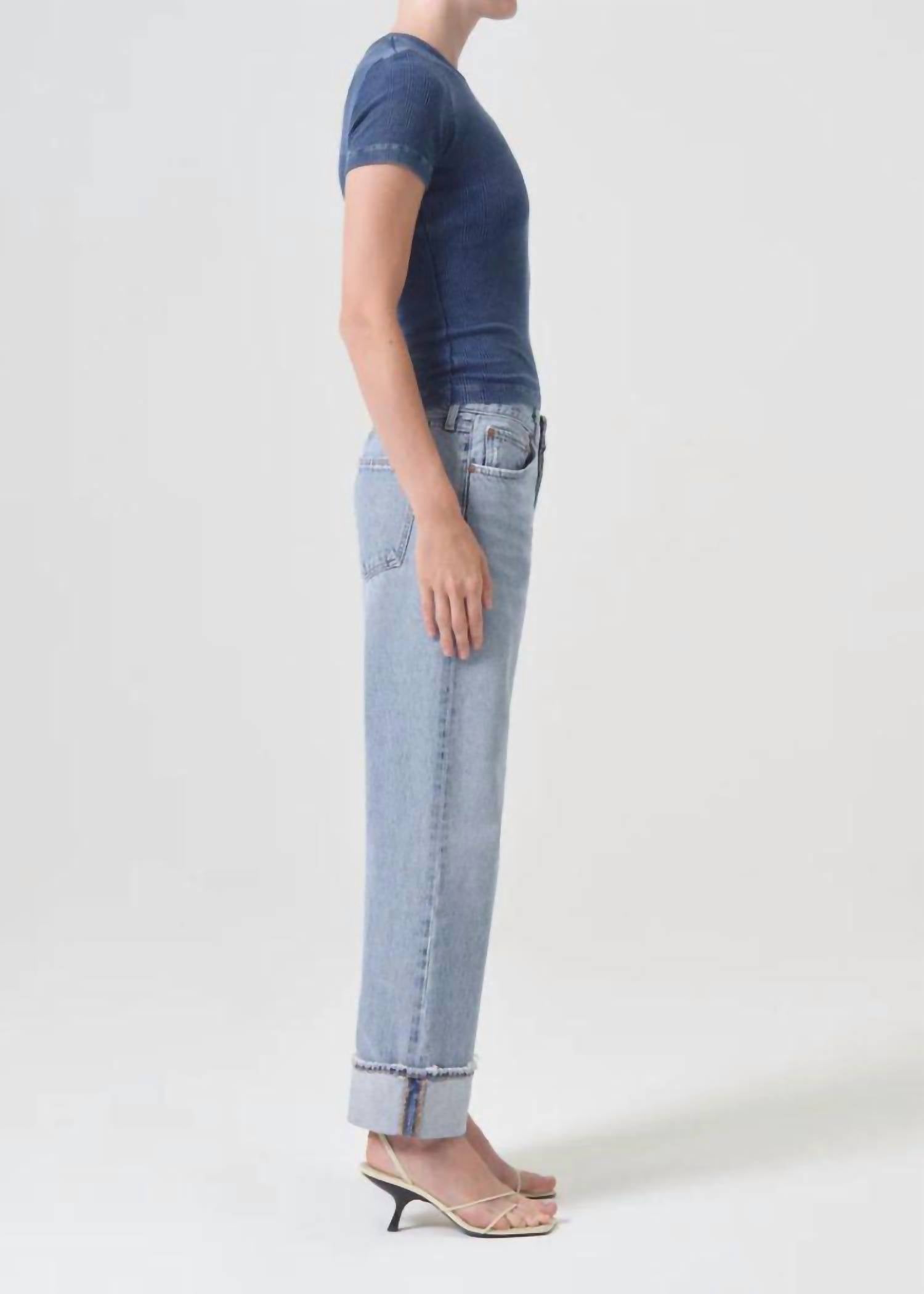 Descubra a Calça Fran Low Slung Easy Straight da AGOLDE, criada para proporcionar o máximo conforto com estilo. Esta calça feminina na cor "Force" apresenta um corte relaxado e um corte reto confortável nos quadris. Confeccionada em 100% algodão regenerativo, a calça possui 30 cm de altura e 67 cm de costura interna, perfeita para um look casual ou chique. Fechamento: Botão. Cuidados: Lavar à máquina.