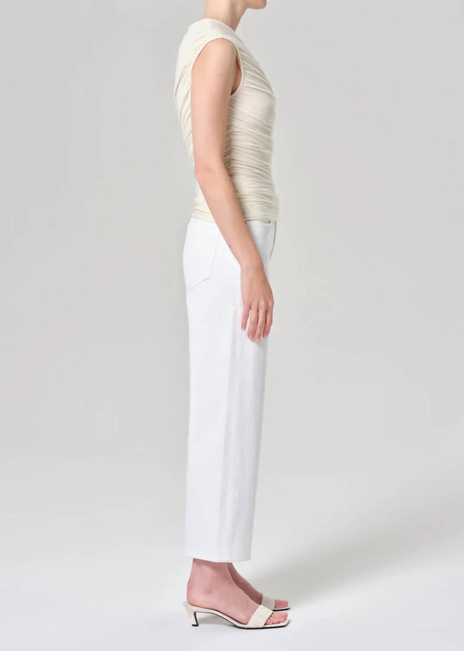 Conheça a calça jeans Harper Jeans da AGOLDE, com caimento relaxado, cintura média e um design elegante, reto e com pernas largas, porém discretamente cropped. Confeccionada em uma mistura de algodão com 98% algodão e 2% elastano, esta calça jeans oferece elasticidade confortável de peso médio com recuperação exemplar. O design branco, clean e impecável, complementado por bainhas acabadas, apresenta fecho de zíper para um visual elegante. Os cuidados são simplificados com lavagem à máquina com água fria, do avesso, e secagem em temperatura baixa, perfeita para um uso confortável e durável.