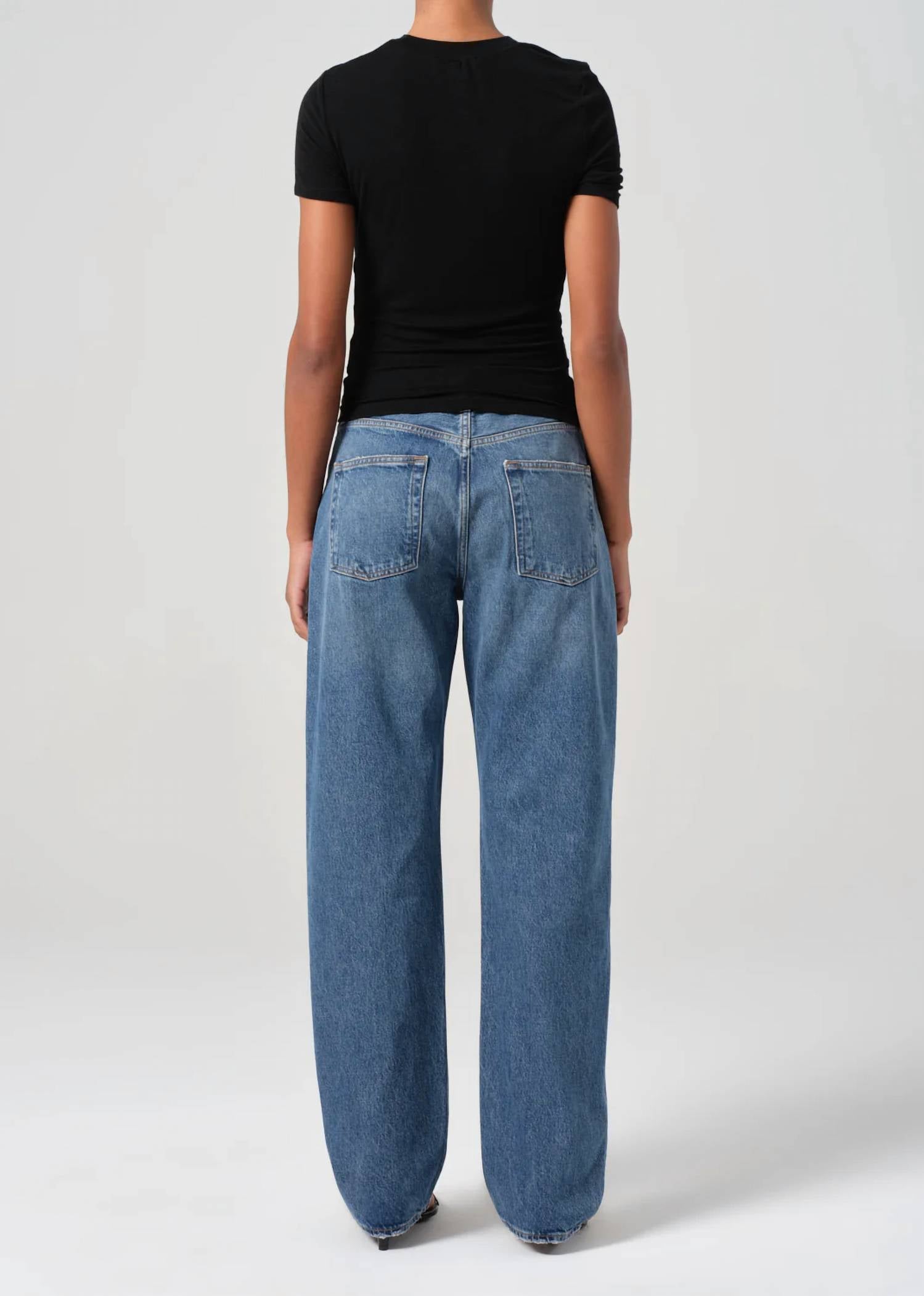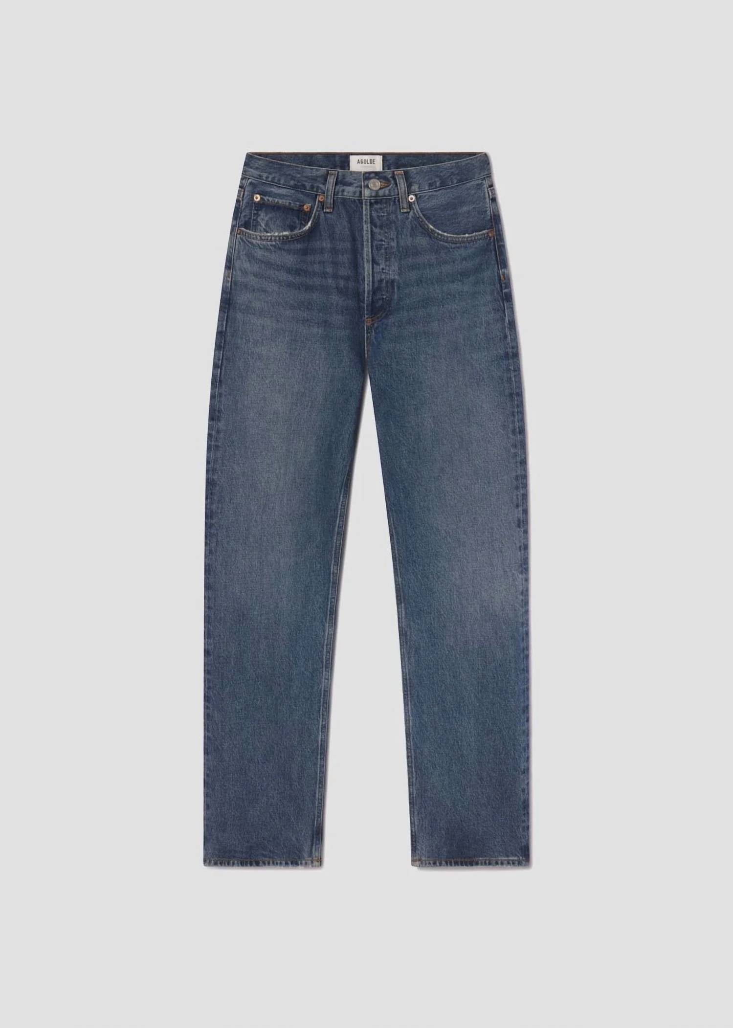 Combine esta calça jeans reta com sapatilhas, sandálias ou até mesmo saltos! Não tem como errar. Conheça a calça jeans Kelly High Rise na cor Essence da AGOLDE, uma adição chique à sua coleção de jeans com sua marcante lavagem escura. Com uma cintura alta elegante, esta calça jeans apresenta um caimento relaxado na parte superior, com 81 cm de costura interna e 29 cm de cós, culminando em uma perna reta sofisticada. Confeccionada na Turquia com uma mistura de jeans com algodão regenerativo e reciclado, ela proporciona um caimento sem elasticidade, com inspiração vintage. Com fecho de zíper e bolsos funcionais, a calça jeans é fácil de cuidar, com instruções de lavagem à máquina e secagem em tambor.