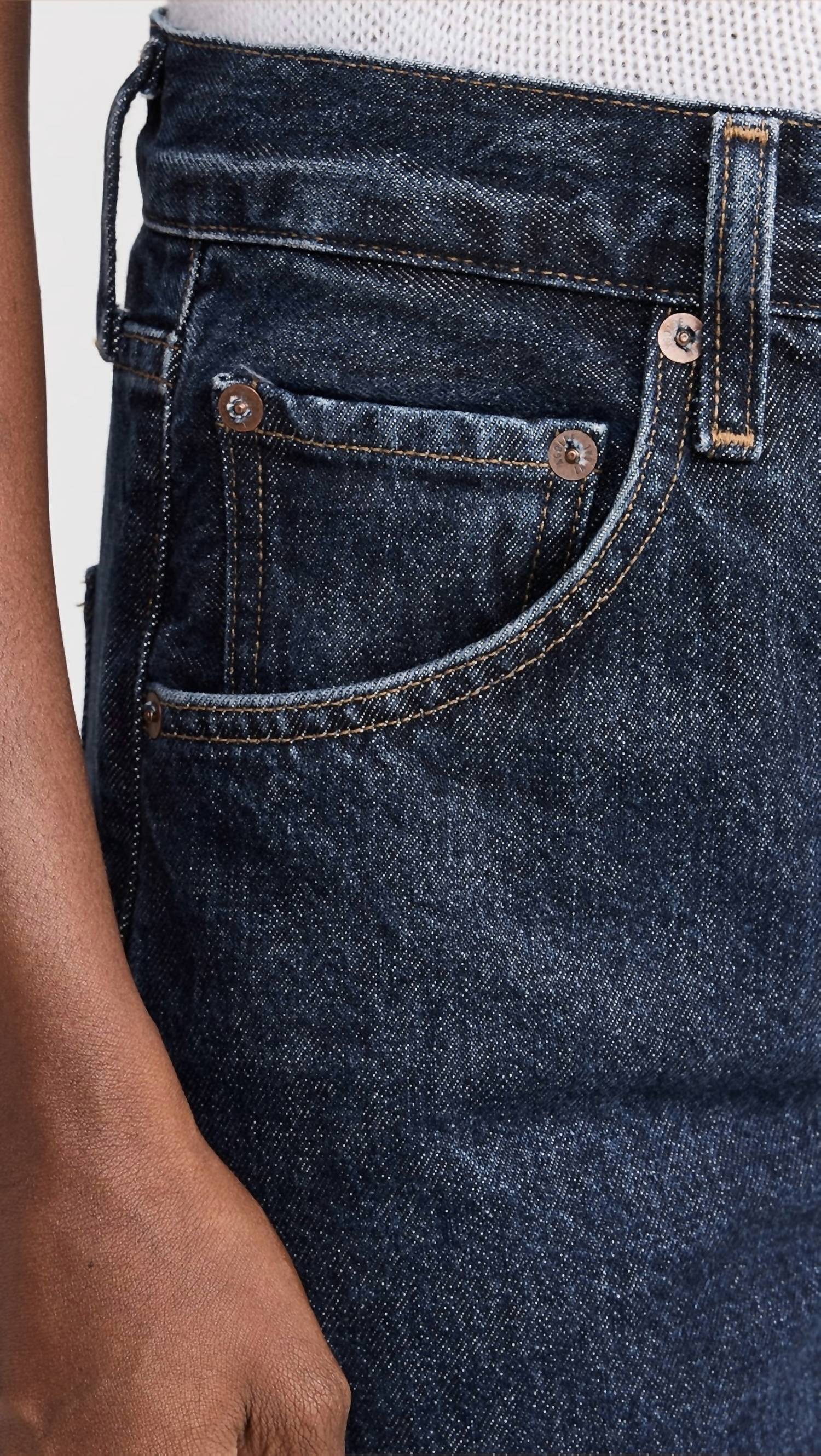 Este jeans clássico de perna reta tem um ajuste perfeito e combina com quase tudo. Descubra a Calça Jeans Low Curve da AGOLDE, confeccionada em 100% algodão regenerativo na rica tonalidade Pendulum. Esta calça jeans de cintura alta e caimento relaxado oferece um visual denim índigo profundo e clean, com um toque rígido e macio, apresentando um corte reto com abertura de 53 cm e entrepernas de 78 cm. Com fecho prático de botões e braguilha com zíper, promete funcionalidade e estilo. Cuide bem desta calça jeans lavando-a à máquina com água fria, do avesso, e secando em temperatura baixa. Disponível no tamanho 26 (altura da modelo: 1,78 m), esta calça jeans é perfeita para suas viagens inspiradas no streetwear nesta primavera.