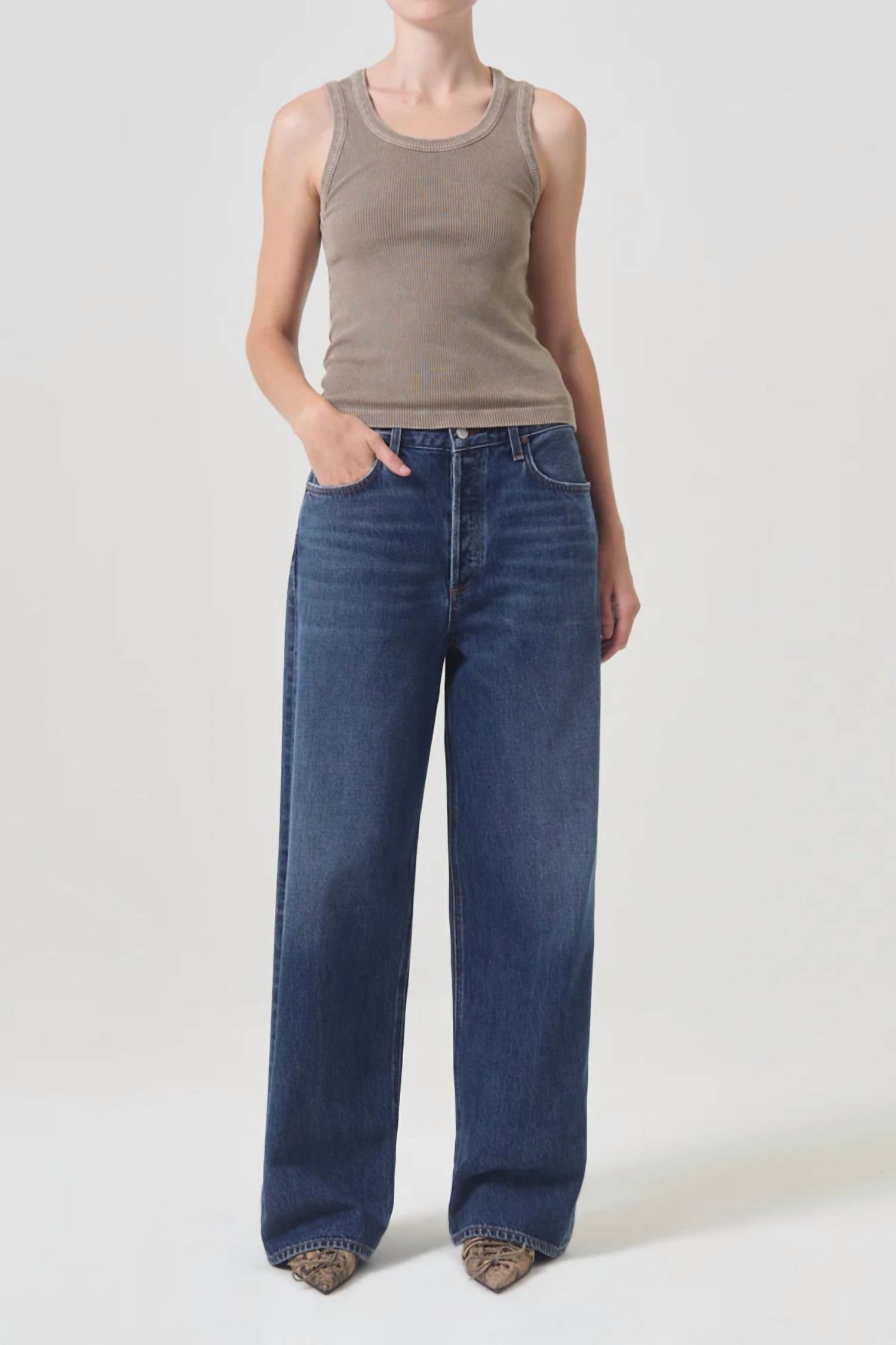 Combine esta calça jeans reta com sapatilhas, sandálias ou até mesmo saltos! Não tem como errar. Apresentamos a Calça Jeans Baggy de Cintura Baixa da AGOLDE, projetada para um estilo e conforto sem esforço, com um corte de cintura baixa. Confeccionada em 100% algodão orgânico, esta calça jeans com estampa sólida é fabricada na Turquia e possui fecho de botão. A calça jeans tem corte reto, com costura interna de 76 cm e bolsos para maior praticidade. As instruções de cuidado incluem lavagem à máquina para facilitar a manutenção, tornando-a uma adição fantástica ao seu guarda-roupa de verão.