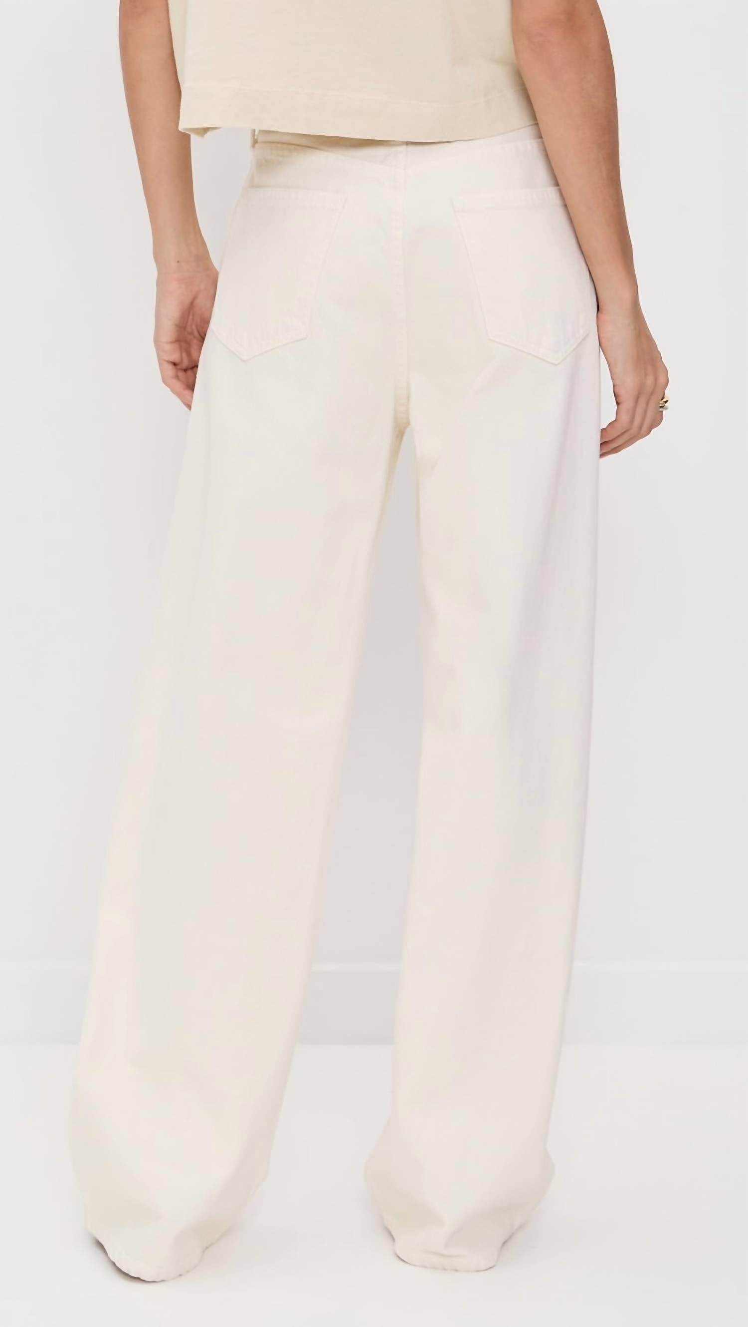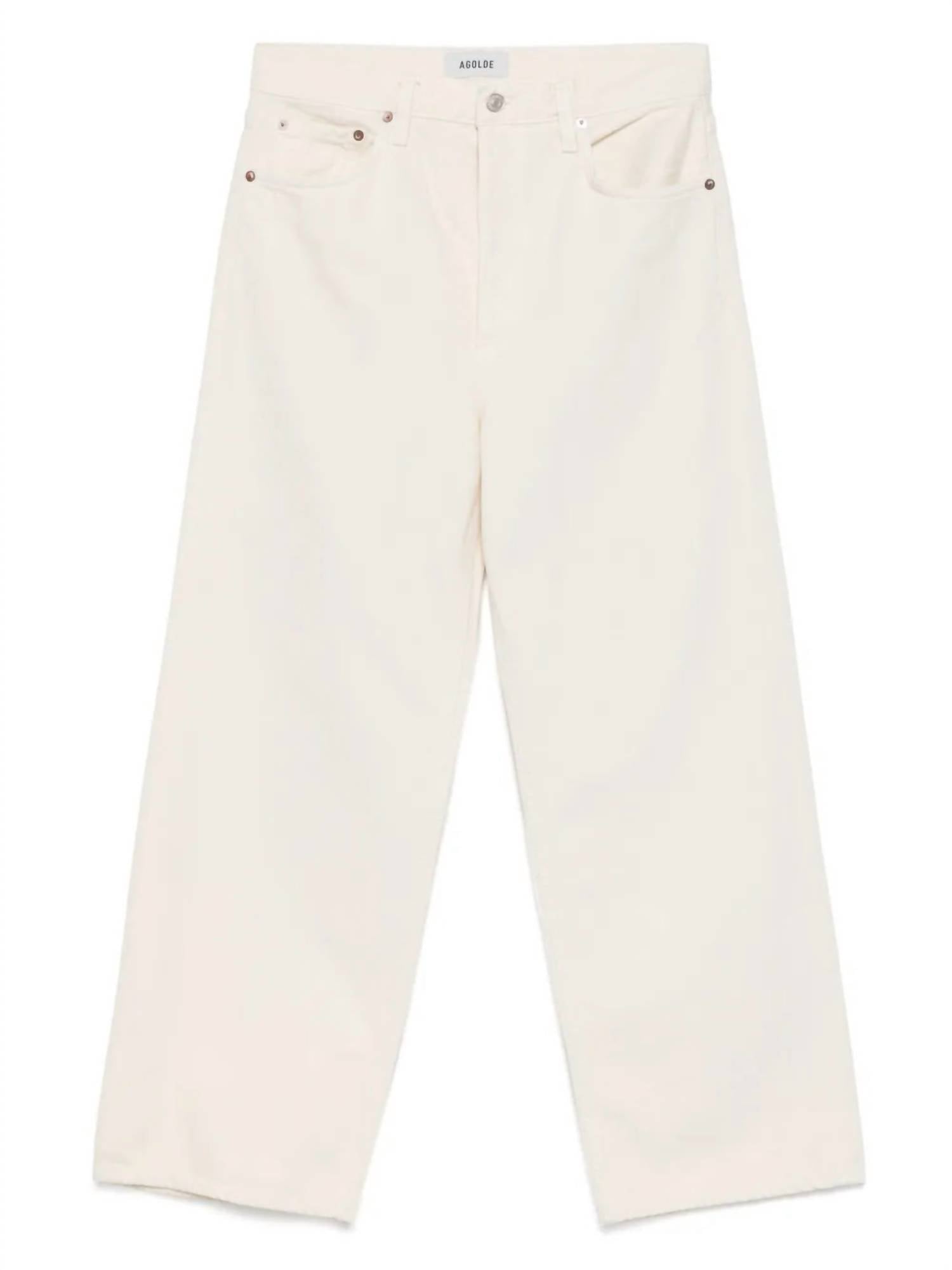 Combine esta calça jeans de perna larga com mules, slides ou suas sandálias de tiras favoritas. Descubra a Calça Jeans Baggy de Cintura Baixa AGOLDE, uma peça marcante que combina conforto e estilo com elegância, com seu caimento relaxado e amplo. Esta calça jeans possui cós alto com 32 cm de altura e 76 cm de costura interna, confeccionada inteiramente em 100% algodão regenerativo, na tonalidade amarelo-claro conhecida como Solar. Com pernas largas e fecho por botão, ela oferece um toque moderno à moda dos anos 90, perfeita para um visual descontraído e sofisticado. Fabricada nos EUA, esta calça jeans foi desenvolvida para um caimento relaxado e pode ser facilmente lavada na máquina.