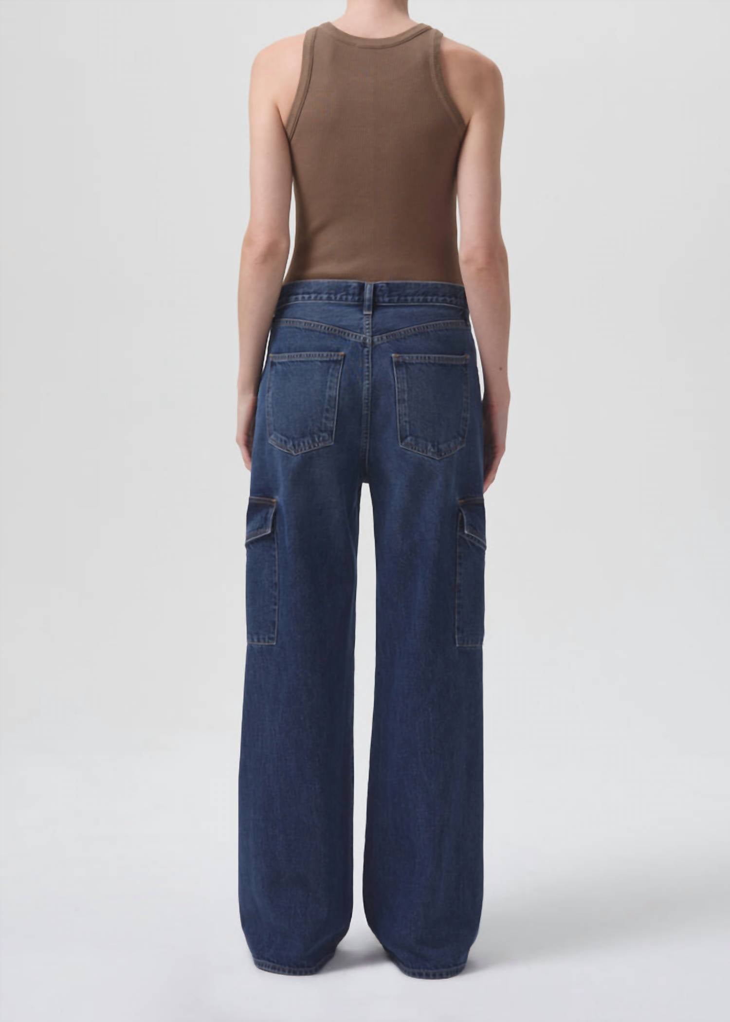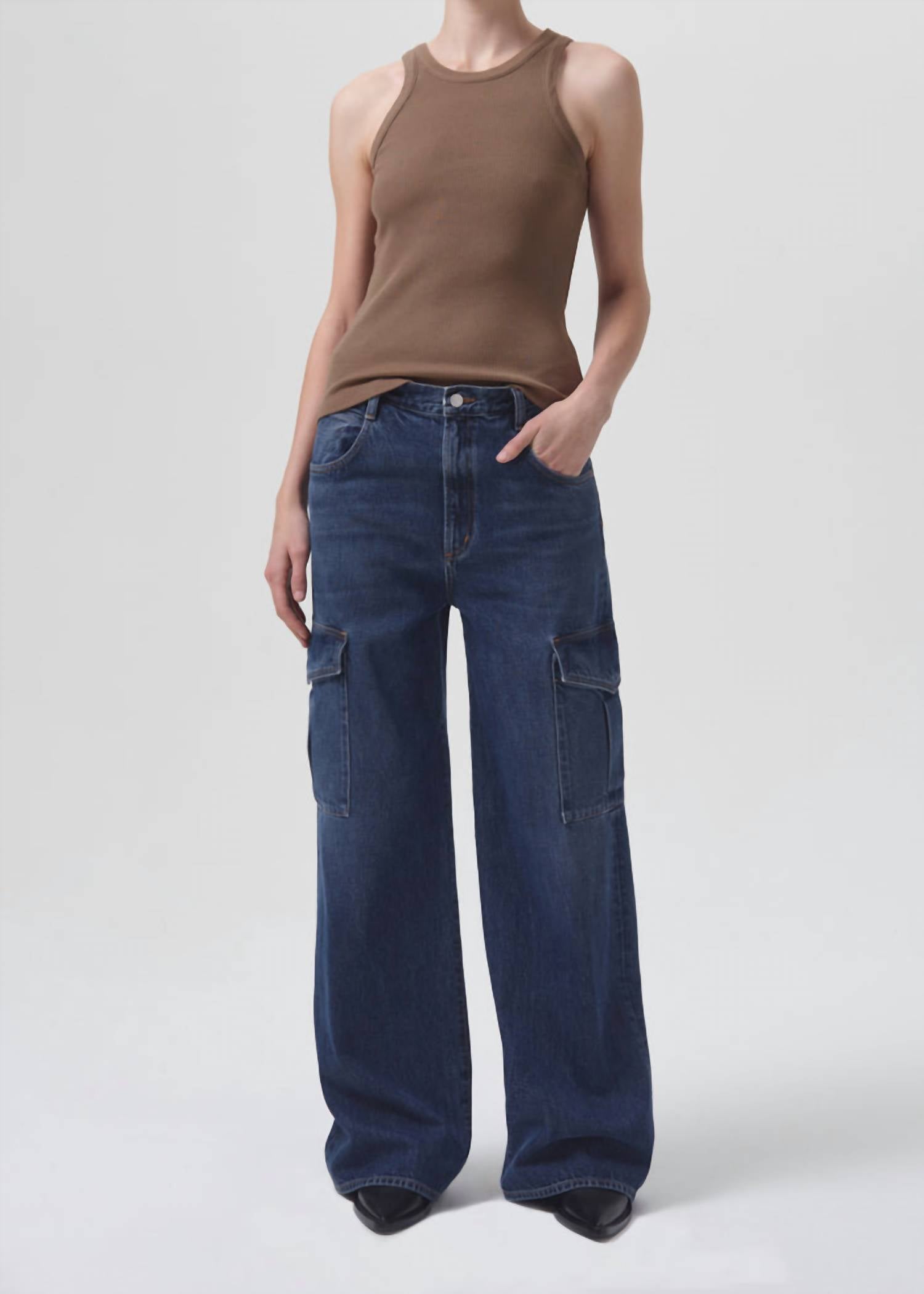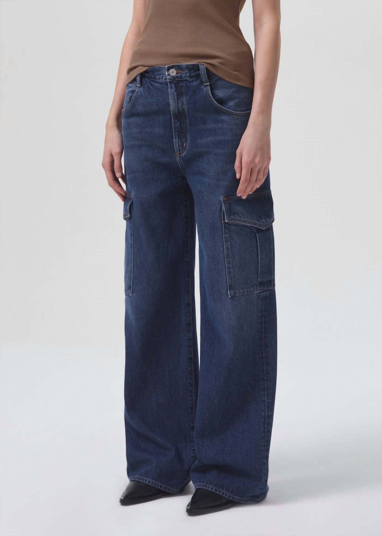 AGOLDE Minka Cargo em Path. A Minka é uma versão mais sofisticada da calça cargo comum. Apresenta cós alto que acentua a cintura, perna larga e larga e bolsos cargo grandes. Detalhes: Fechamento: Braguilha com zíper. Tecido: 80% algodão, 20% algodão reciclado. Gancho: 30 cm, Costura interna: 81 cm, Abertura da perna: 57 cm. Ajuste perfeito ao tamanho. Instruções de cuidado: Lavar à máquina com água fria, do avesso, com cores semelhantes. Não usar alvejante. Secar em temperatura baixa.