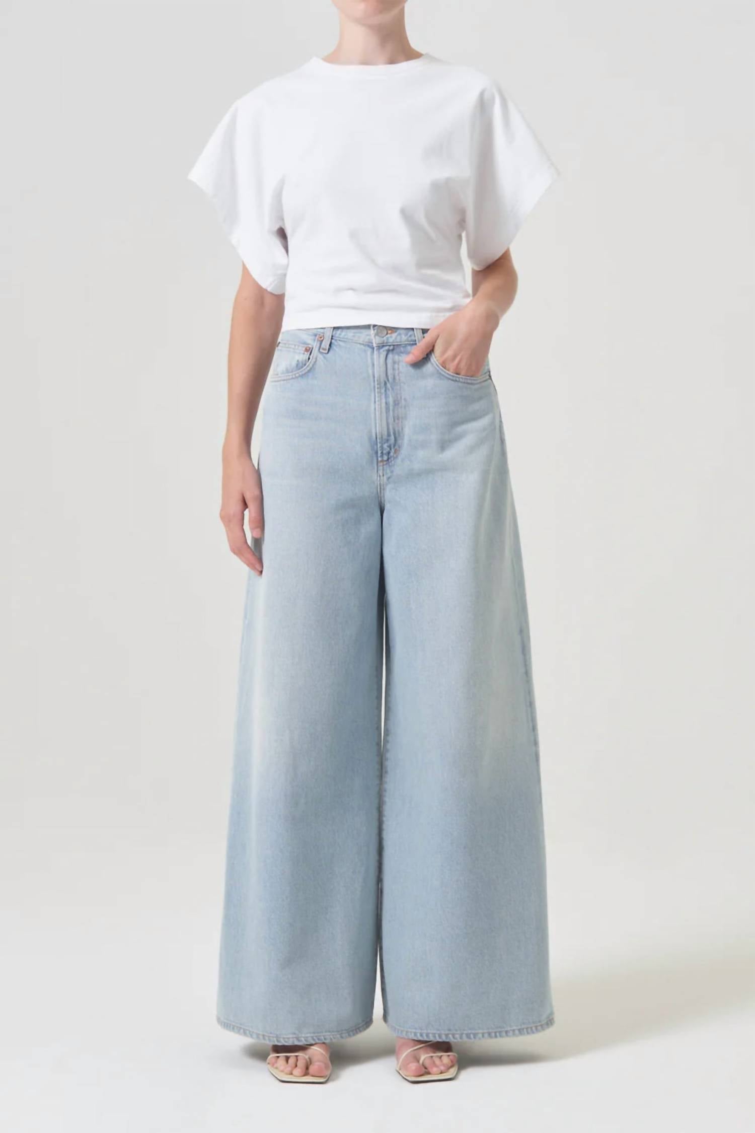 Tão fofos quanto confortáveis. A calça jeans AGOLDE Nolan Wide Leg é uma adição estilosa a qualquer guarda-roupa, confeccionada em 100% algodão regenerativo para uma escolha sustentável. Originária da Turquia, esta calça jeans apresenta uma perna larga que valoriza o corpo, com dimensões que medem 38 cm no joelho e se expandem para 40 cm na abertura da perna. Ela conta com um prático fecho de zíper frontal e é fácil de cuidar, seguindo as instruções de lavagem à máquina. Ideal para quem aprecia jeans com lavagem clara e estampas lisas, esta calça combina com estilos clássicos e contemporâneos.