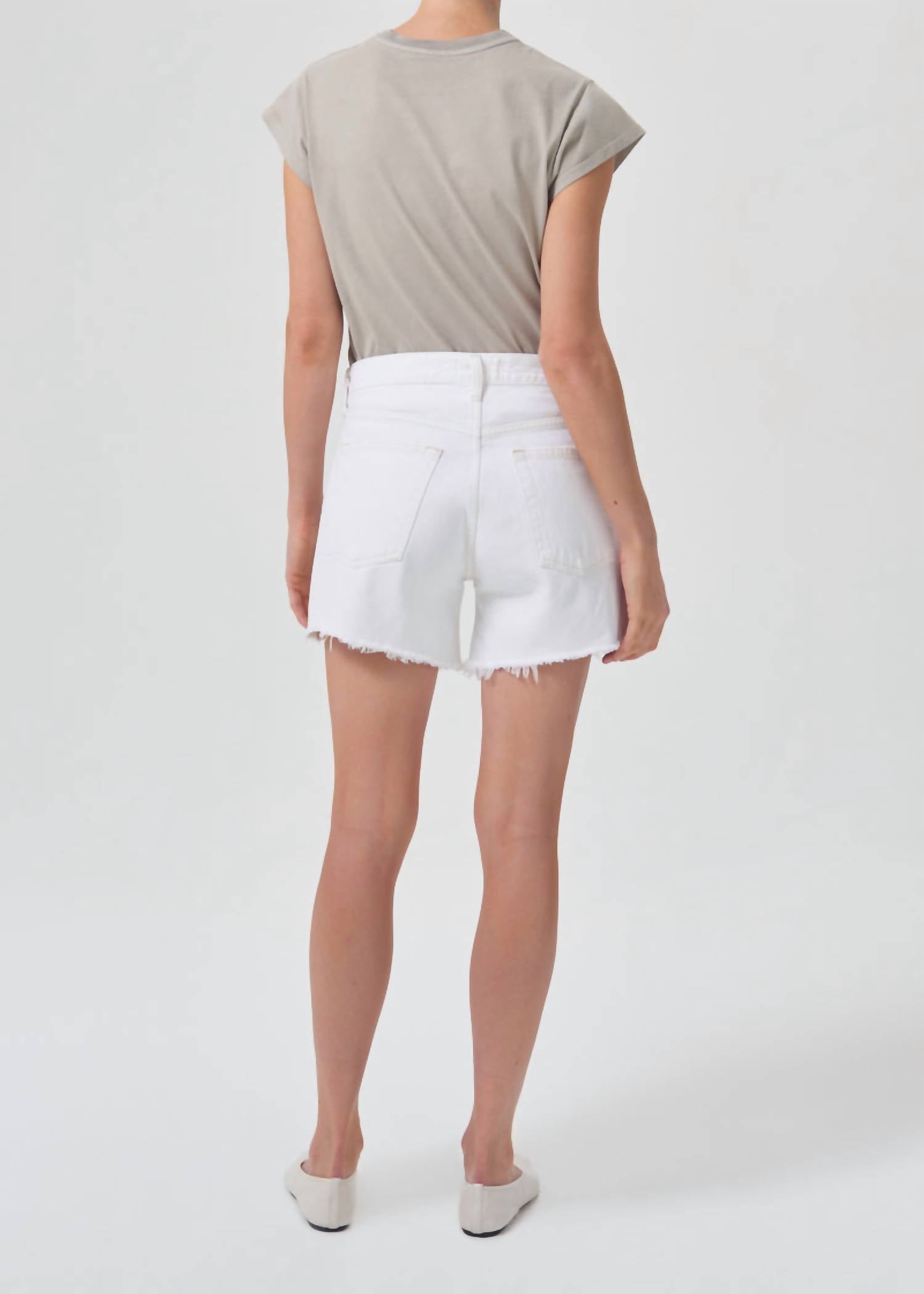 Not only cute but extremely comfortable. The jean shorts you will be reaching for all season long. Introducing the Parker Long Short by AGOLDE, a perfect choice for a practical yet stylish everyday look. These jean shorts in a solid Panna Cotta color feature a relaxed high-rise and a 4 1/2" inseam, ensuring all-day comfort with room to move. Made from 100% cotton, you’ll love how they soften with each wash while maintaining their vintage appeal.