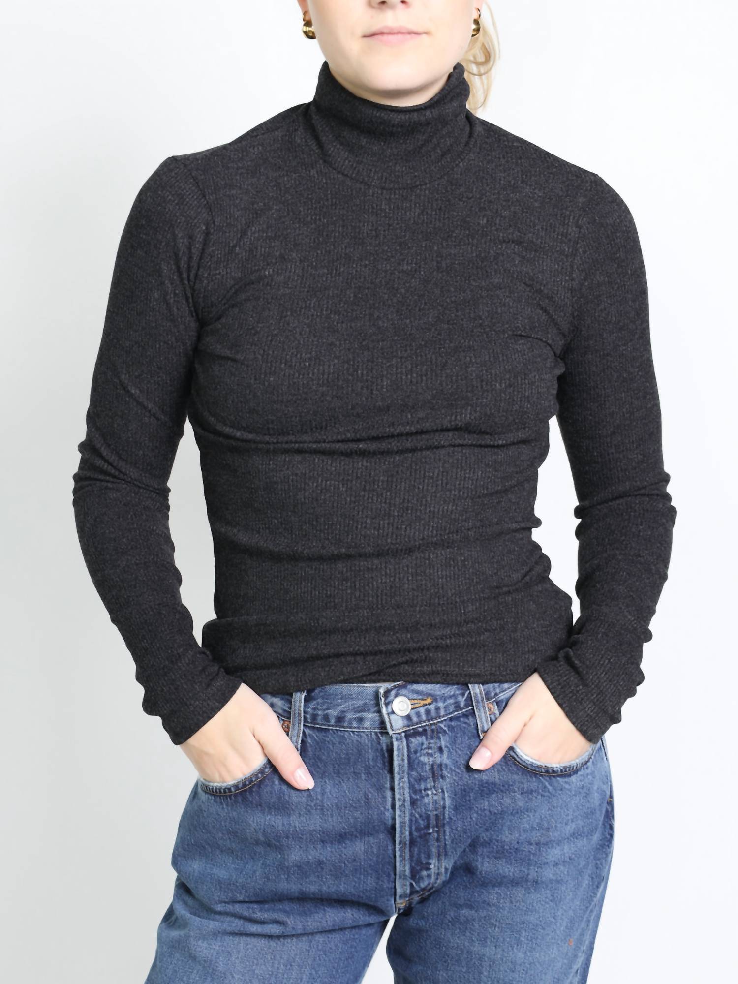 Um clássico essencial que todo guarda-roupa precisa. Apresentamos o Suéter de Gola Alta Pascale da AGOLDE, uma adição estilosa a qualquer guarda-roupa com seu corte justo e elegante malha canelada. Comprimento da manga: Manga longa. Composição: Uma mistura suave de poliéster, algodão e rayon. Fecho: Puxável. Cor: Cinza. Decote: Gola alta. Instruções de cuidado: Lavagem a seco com opção de secagem na secadora. Ideal para quem busca conforto com um toque de sofisticação.