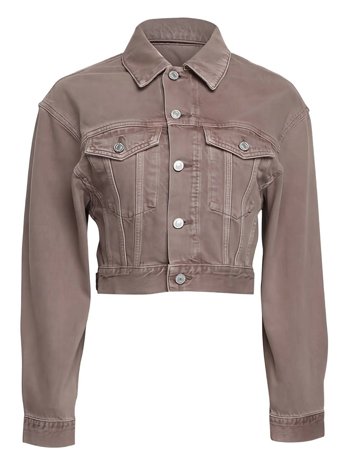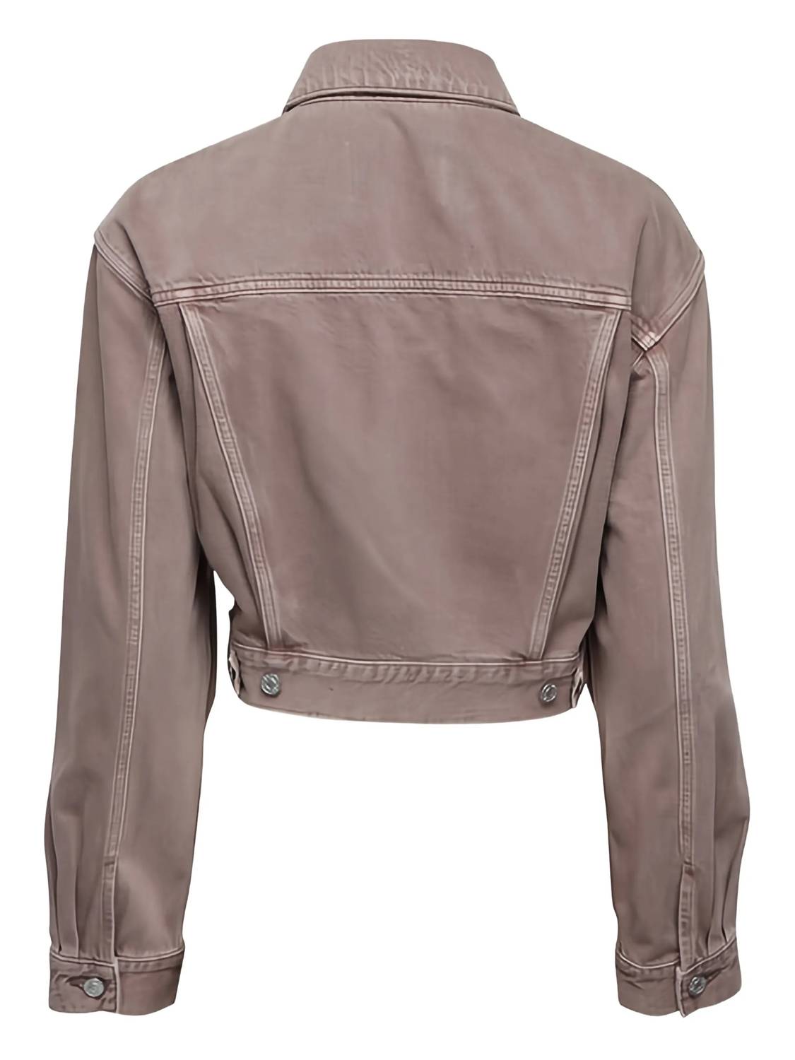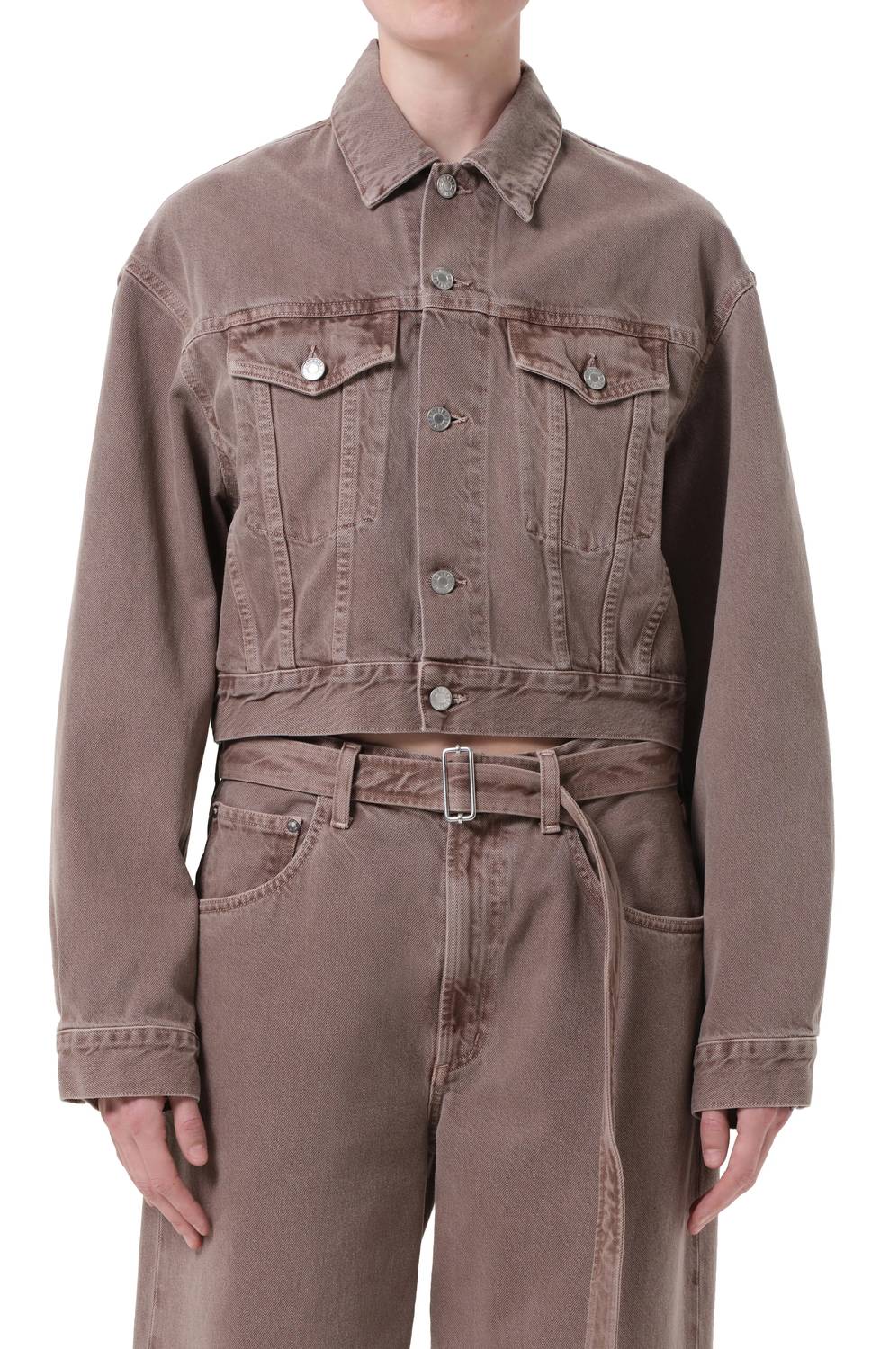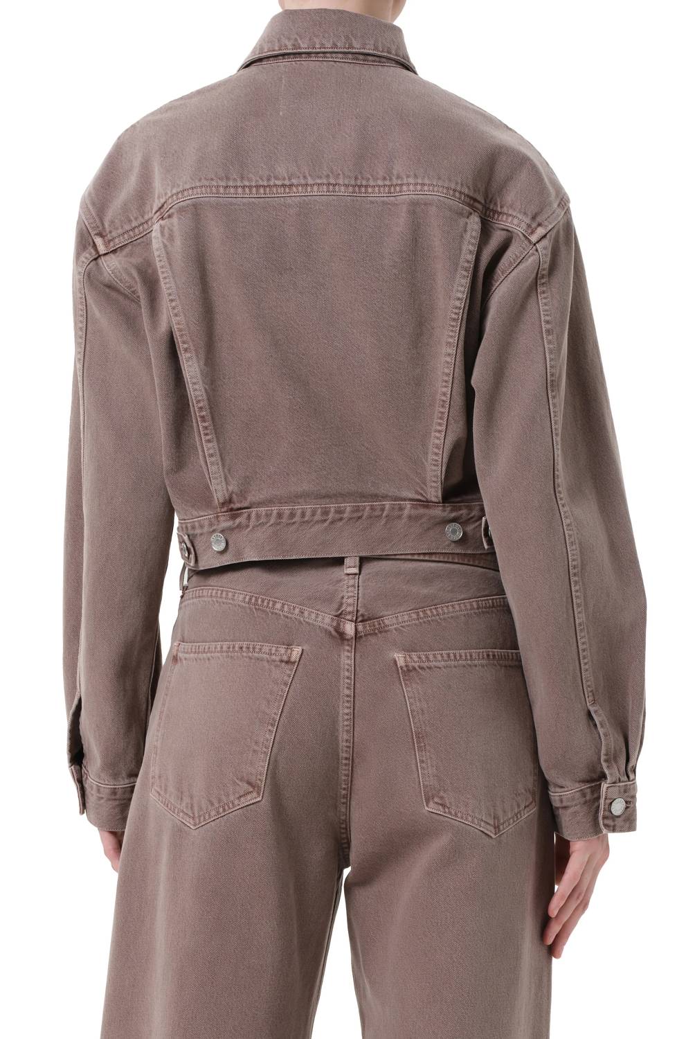 The Radley Jacket by AGOLDE is a stylish update on the classic trucker, with long sleeves and a cropped 20" length for a modern twist. Made from 100% regenerative cotton denim in a dark dusty rose hue named Ceramic, this jacket offers a non-stretch, durable wear that remains soft throughout the day. Manufactured in Turkey, it features a boxy fit complemented by a button closure and structured collar, making it perfect for layering during the fall. Care is simple with machine washing and tumble drying assured, while functional pockets add practicality to this chic vintage-inspired piece.