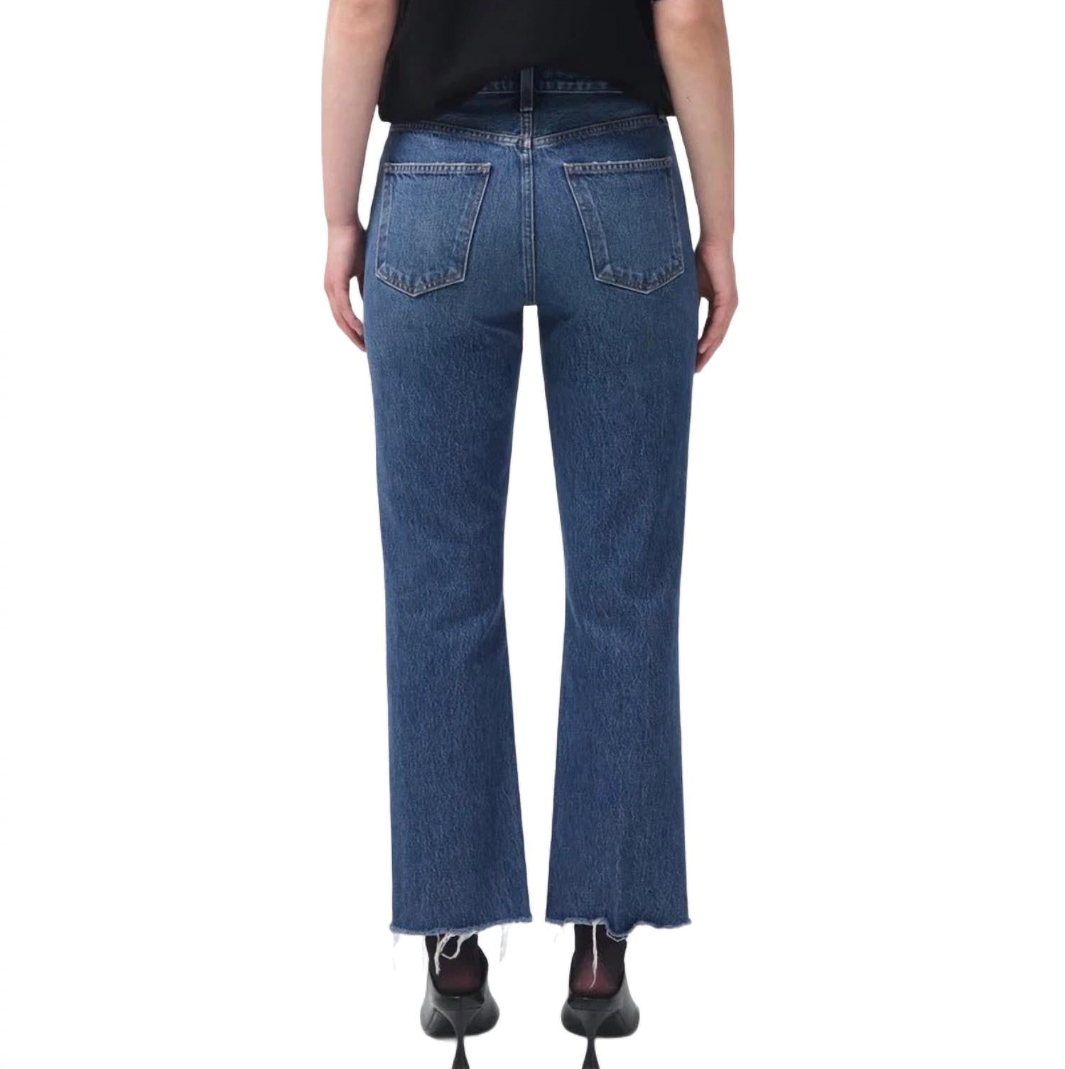Se você procura um jeans boot-cut, este é o jeans ideal. Braguilha com botões, corte de cinco bolsos com costura contrastante, ferragens prateadas e passantes para cinto. Lavagem azul desbotada e com vincos, perna boot-cut com bainha desfiada. 100% algodão orgânico. Tamanho real. Cintura alta: 29,5 cm, entrepernas: 75 cm, abertura da perna: 44 cm (tamanho 26). Lavável à máquina. Fabricado na Turquia.