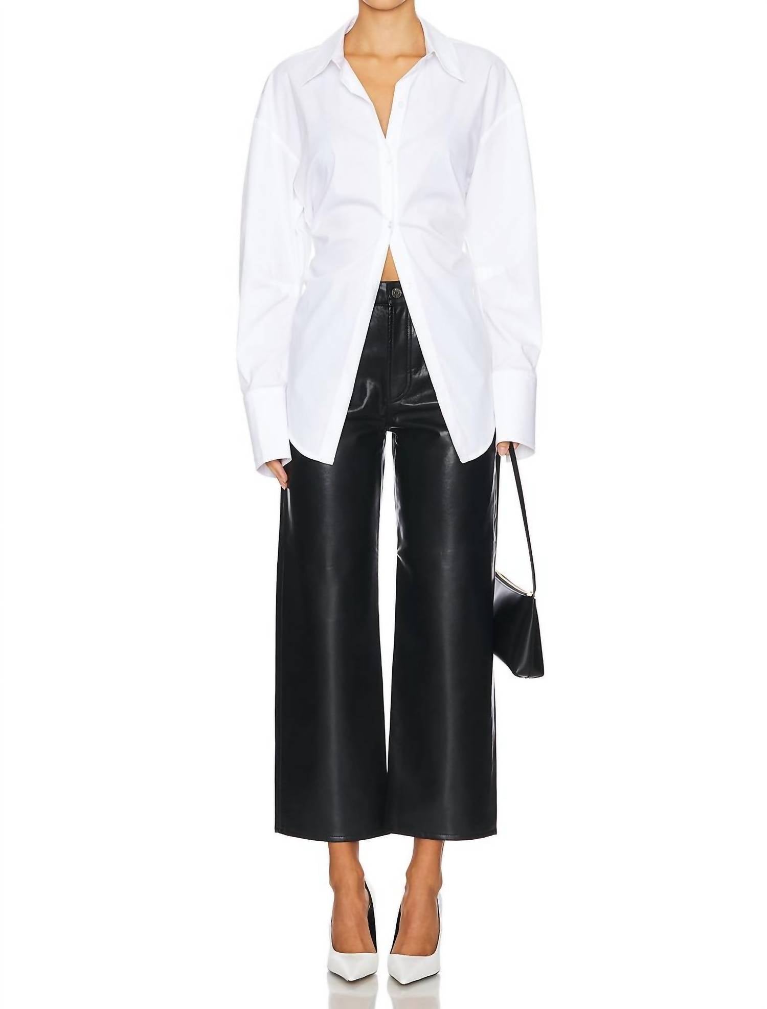 Apresentamos a Calça Ren High Rise Straight da AGOLDE, confeccionada em 50% couro reciclado, 30% poliuretano, 10% viscose e 10% poliéster, para um visual elegante. Esta calça chique é perfeita para elevar qualquer look. Fabricada nos EUA, com um prático fecho de zíper e bolsos funcionais, oferece estilo e praticidade. As instruções de cuidado incluem lavagem a seco e secagem no varal para garantir a longevidade do material.