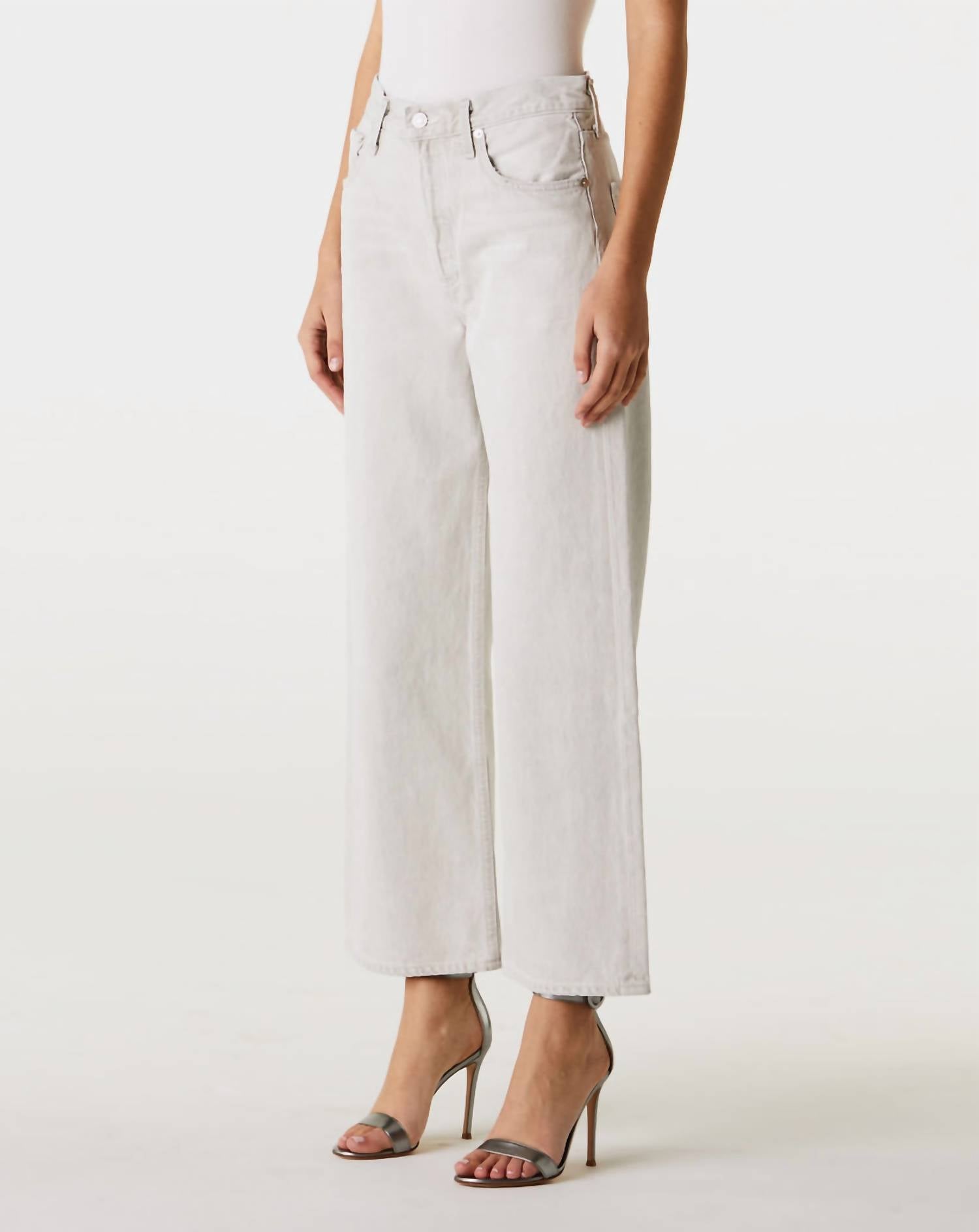 Elevate your wardrobe with the Ren High Rise Wide Leg Jeans by AGOLDE in the color Colina, designed for women who love a relaxed fit. Made from 100% cotton, these jeans feature a high-rise with a 12.25" rise and a 27.5" inseam, perfect for a sophisticated and minimalist style. Closure: Button closure. Crafted in the United States, they come with pockets and are easy to care for with machine wash and tumble dry instructions.