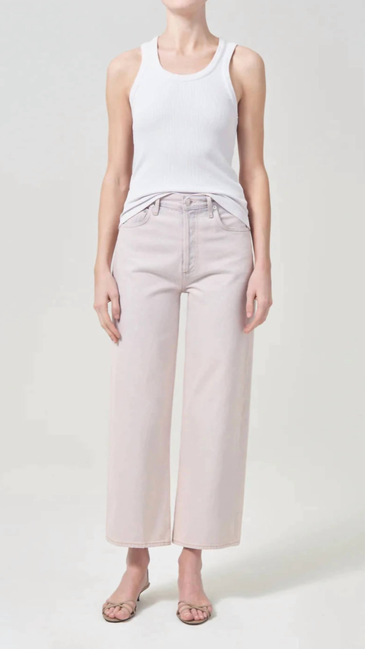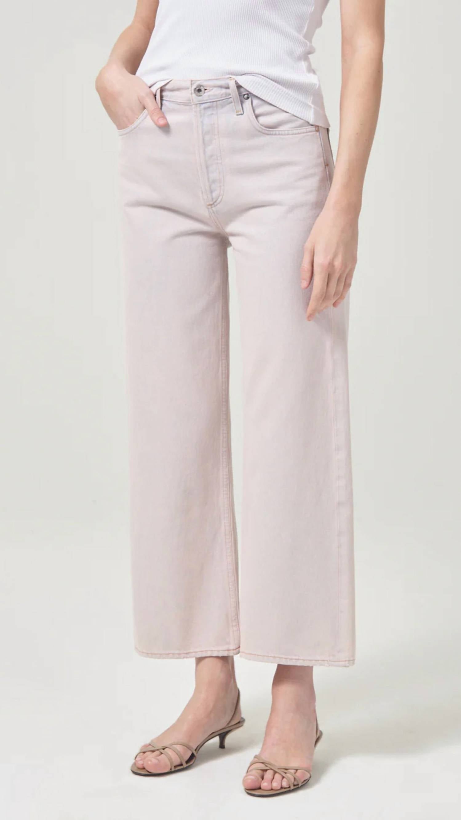 Experimente um estilo sem esforço com a Calça Jeans AGOLDE Ren High Rise Wide Leg, confeccionada em 100% algodão regenerativo para um toque macio e sem elasticidade. Com cintura alta e caimento soltinho nos quadris, esta calça jeans rosa blush apresenta um corte de perna larga e bainhas acabadas. Com fecho de botão, esta calça jeans oferece 30 cm de altura, 69 cm de costura interna e 49 cm de abertura nas pernas. Fácil de cuidar: lave à mão em água fria e deixe secar na horizontal. Modelo no tamanho 26, a primeira foto mostra o caimento em uma modelo com medidas: 1,75 m de altura, 86 cm de busto, 73 cm de cintura e 96 cm de quadril.
