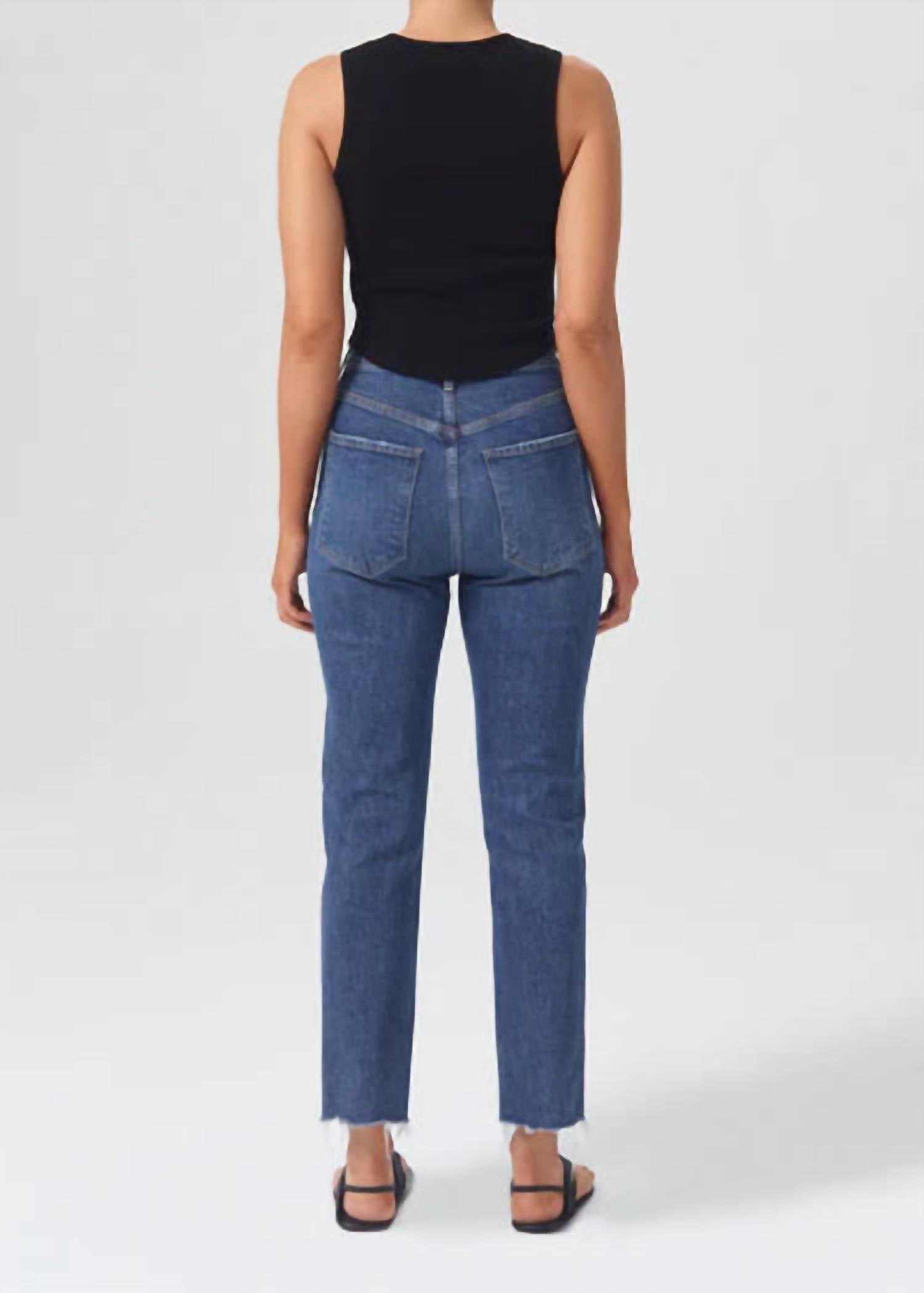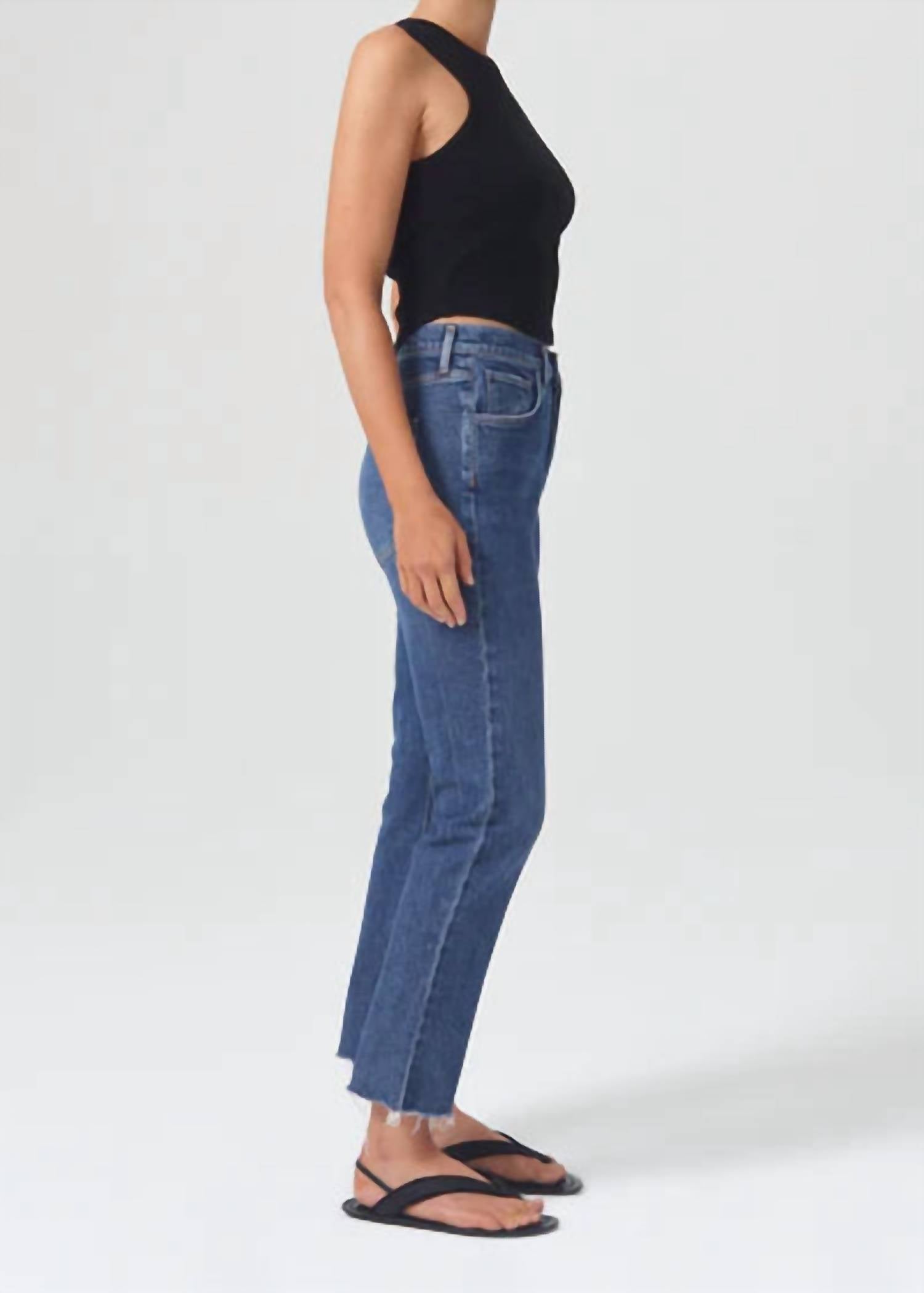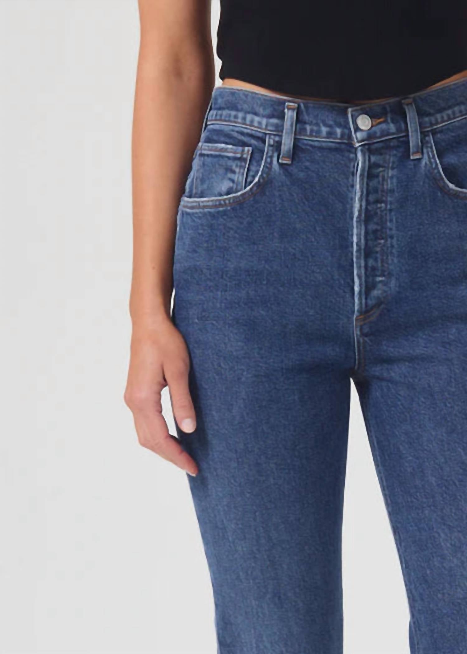 O jeans curto perfeito para as estações de transição. A calça jeans Riley Crop da AGOLDE na cor Escape oferece uma estética vintage atemporal com seu design de cintura alta e perna reta e justa. Confeccionada em uma mistura de algodão com 99% algodão orgânico e 1% elastano, esta calça jeans cropped apresenta 66 cm de costura interna e 35 cm de abertura na perna, proporcionando um caimento universalmente elegante. Fabricada na Turquia, fecha com um elegante botão na braguilha e inclui bolsos práticos para maior praticidade. Cuidados: Lavar à máquina com água fria, do avesso, com cores semelhantes; não usar alvejante; secar em temperatura baixa. A modelo tem 1,78 m e veste tamanho 67.